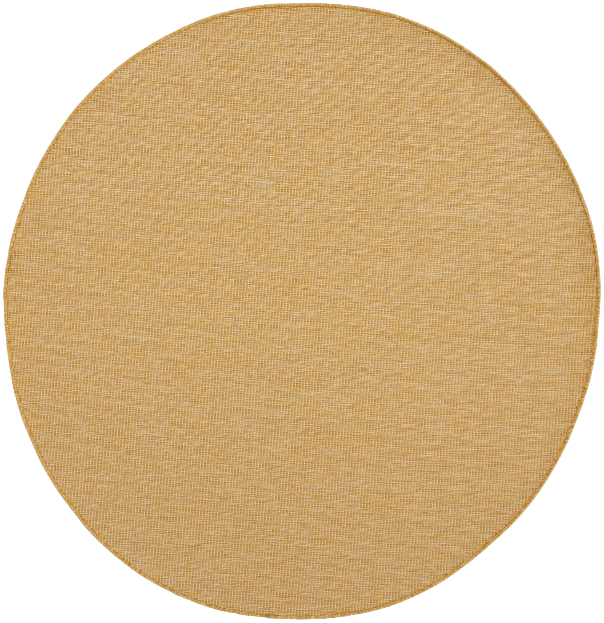 This 6-foot yellow indoor outdoor area rug, is a great way to add warmth to a room. This geometric round shaped rug features a solid color that combines hue and shape for a great look. Solid colors are versatile and will blend with any existing decor style. Versatile in use, durable, and easy to maintain, this rug is an ideal solution to add a decorative and inviting touch to your indoor or outdoor space. 72-inch h x 72-inch w x 0.25-inch d.