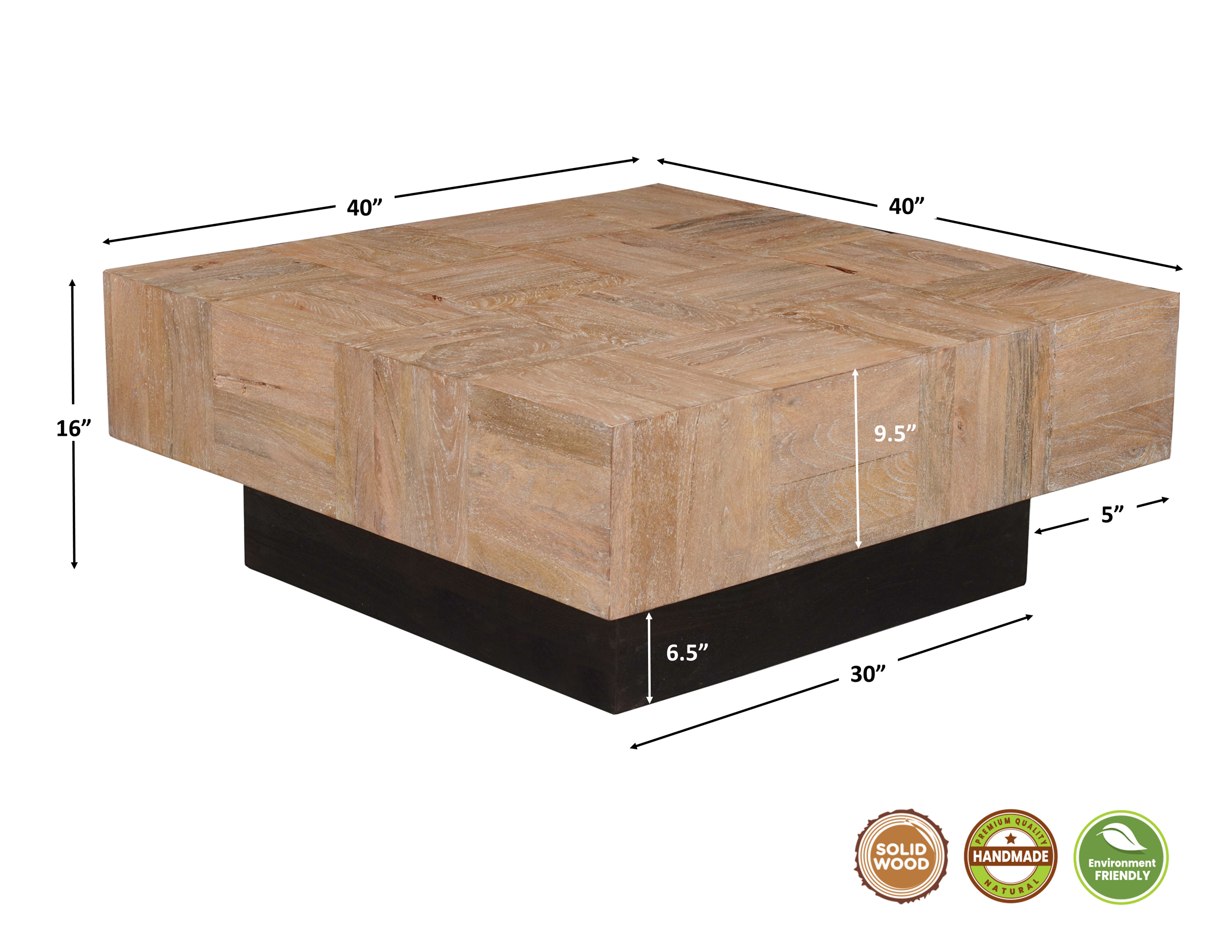 wood square block coffee table, square block coffee table, solid wood square block coffee, black solid wood square block, 40" brown black solid wood |