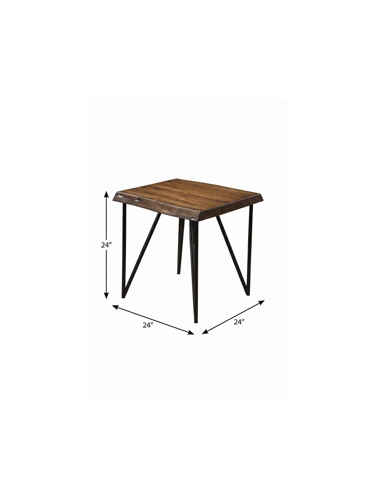 Distinctive in style the 24" black and wood brown solid wood end table radiates a versatile charm. Quality construction from the black steel base combines with wood brown solid wood of the top to give this table a fresh and updated look. A great accent on either side of the sofa or bed, this adorable end or side table is just what you need. You can also use it as an entryway table to hold your keys. 24" H x 24" W x 24" D