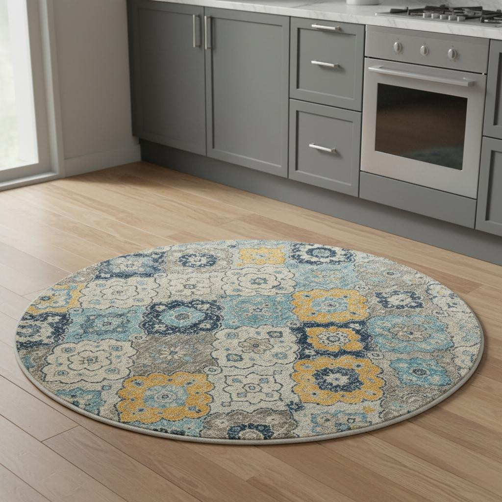 washable non skid area rug, non skid area rug, skid area rug, geometric washable non skid area, blue gray round geometric washable |