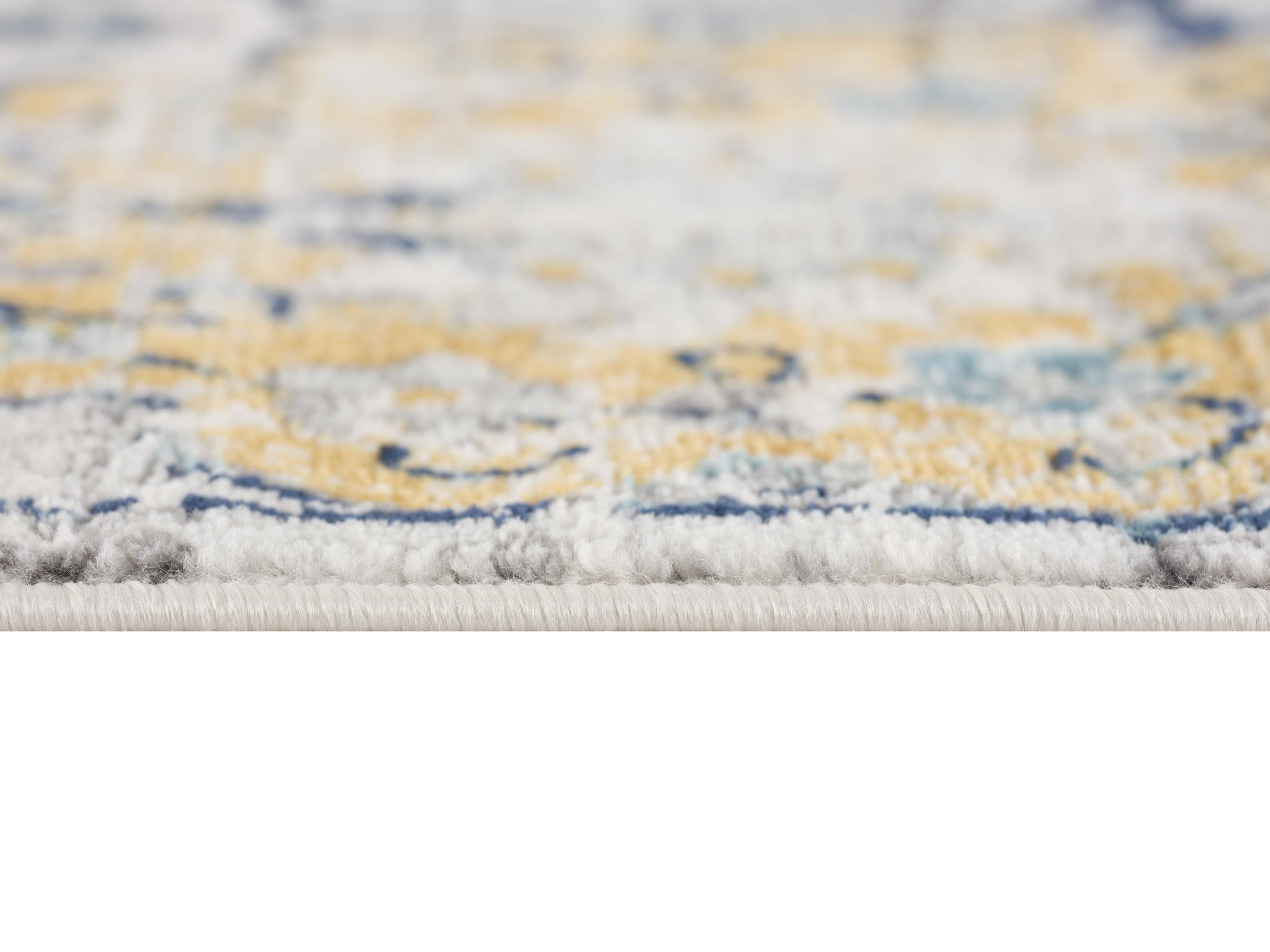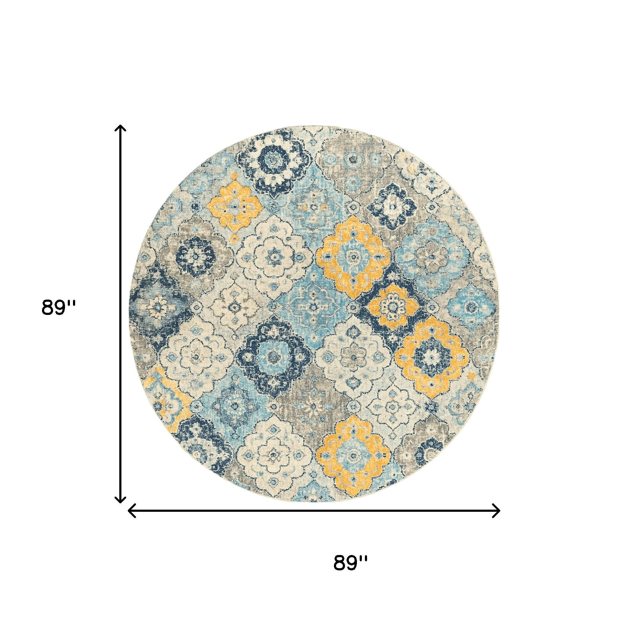 Add great coloration and comfortable texture to your space with this 8-foot blue and gray round floral washable non skid area rug. This geometric round shaped rug features a floral pattern in blue and gray that combines a good looking print with a unique and updated shape. The mix of shape, color, and design gives this rug refreshing visual interest. Area rugs help to give warmth and sense of home to your space. 89-inch H x 89-inch W x 0.4-inch D