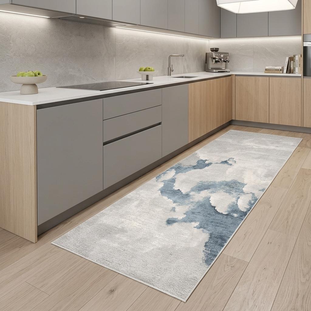 gray abstract washable runner rug, abstract washable runner rug, washable runner rug, blue gray abstract washable runner, gray abstract washable runner |