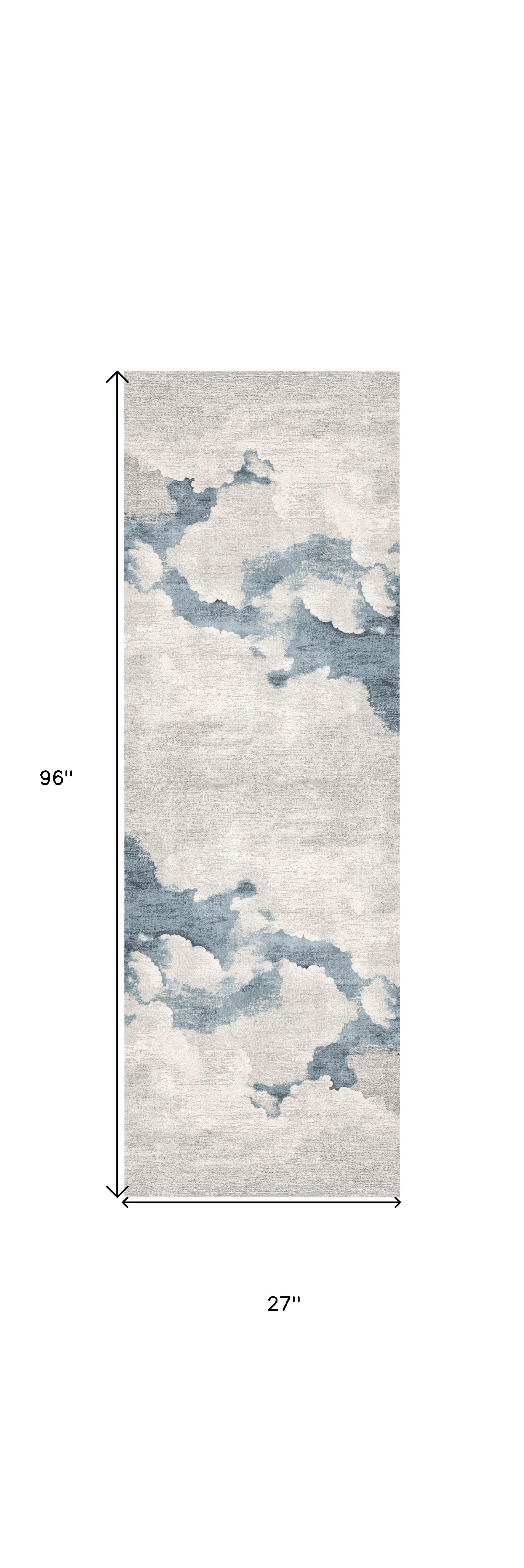 Add some artistry to your room with this 8-foot blue and gray abstract washable runner rug. Built to last, this rug crafted from polyester fibers is known for its durability and long lasting appeal. Rugs are a great way to showcase your style, hide imperfections, warm your home and reduce noise. This rectangular shaped rug features a abstract design that will add a functional and decorative accent to your space. This contemporary style runner makes a great accent for the hallway, in front of cabinets, in the laundry room, or any other space you need a narrow and long rug. 27-inch h x 96-inch w x 0.6-inch d.