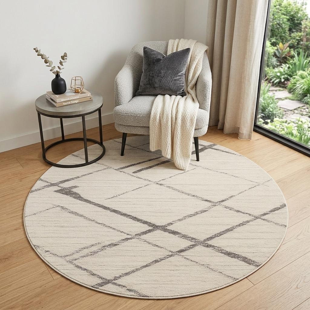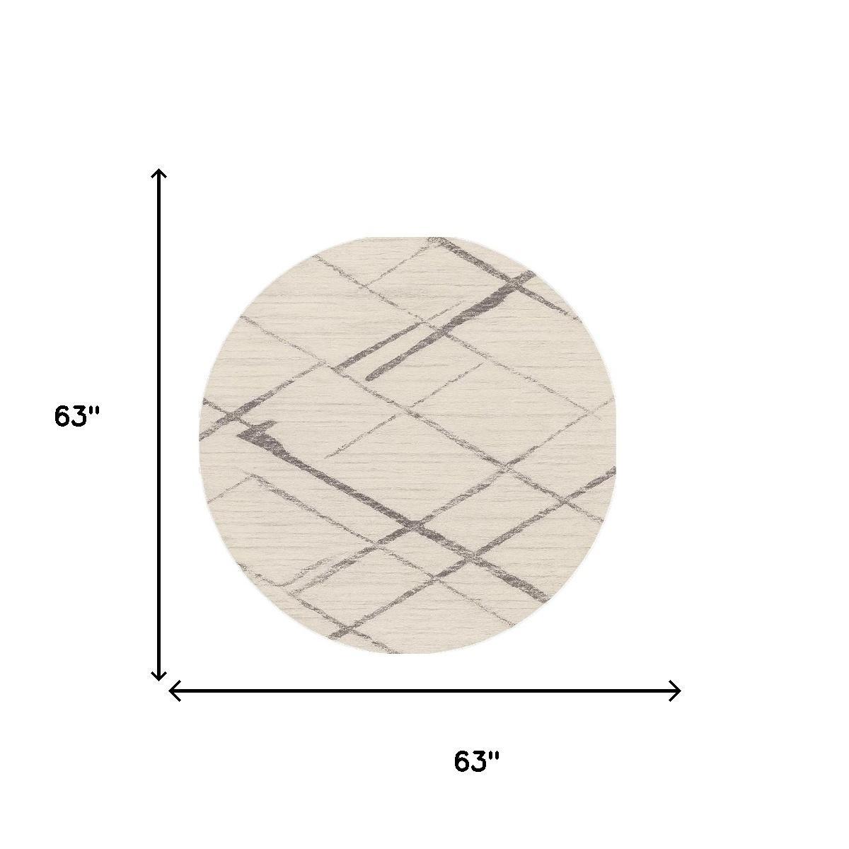 Add great coloration and comfortable texture to your space with this 5-foot beige and gray abstract distressed round rug. This geometric round shaped rug features a abstract pattern in beige and gray that combines a good looking print with a unique and updated shape. The mix of shape, color, and design gives this rug refreshing visual interest. Ideal for spaces with kids and pets, this rug is stain resistant to help repel stains and spilled liquids. 63-inch H x 63-inch W x 0.4-inch D
