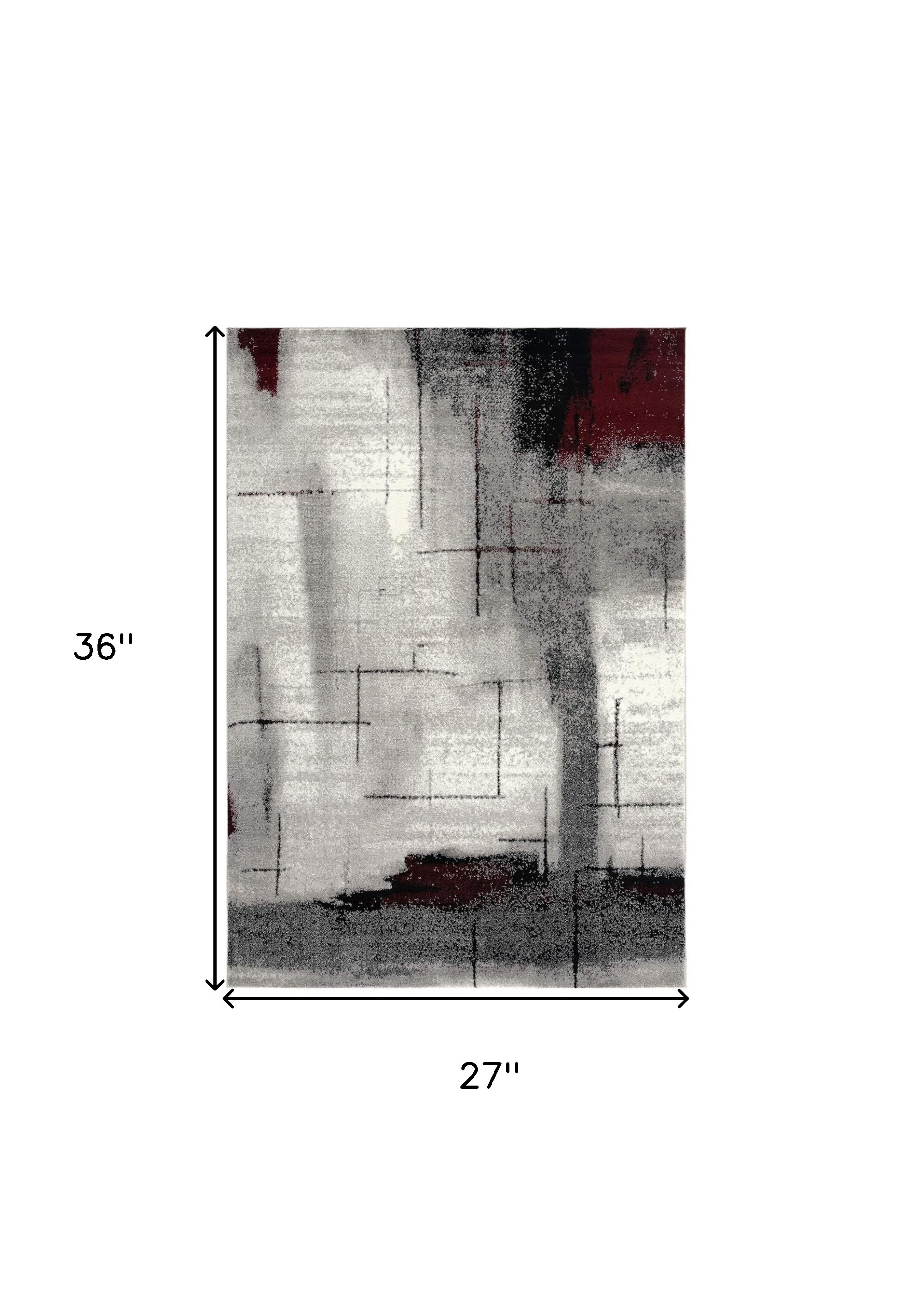 Add great coloration and comfortable texture to your space with this 2-foot x 3-foot gray and red abstract distressed area rug. This rectangle shaped rug features a abstract design in gray and red to give it visual interest. A classic shape marries with good looking design for your space ideal for spaces with kids and pets, this rug is stain resistant to help repel stains and spilled liquids. 27-inch H x 36-inch W x 1-inch D