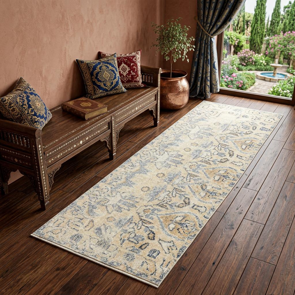 Set an inviting tone in your space with this 2' x 6' gray moroccan machine tufted runner rug with uv protection. This runner shaped rug features a moroccan design in gray to give it visual interest. A classic shape marries with good looking design for your space Ideal for spaces with kids and pets, this rug is stain resistant to help repel stains and spilled liquids. Place this area rug against a hardwood or tile floor and it will enliven your living space with style and sophistication. 0.25" H x 27.5" W x 75" D