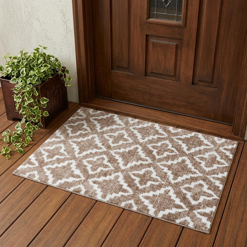 Set an inviting tone in your space with this 2' x 3' sand moroccan machine tufted area rug with uv protection. This rectangle shaped rug features a moroccan design in sand to give it visual interest. A classic shape marries with good looking design for your space Ideal for spaces with kids and pets, this rug is stain resistant to help repel stains and spilled liquids. Place this area rug against a hardwood or tile floor and it will enliven your living space with style and sophistication. 0.25" H x 20" W x 27.5" D