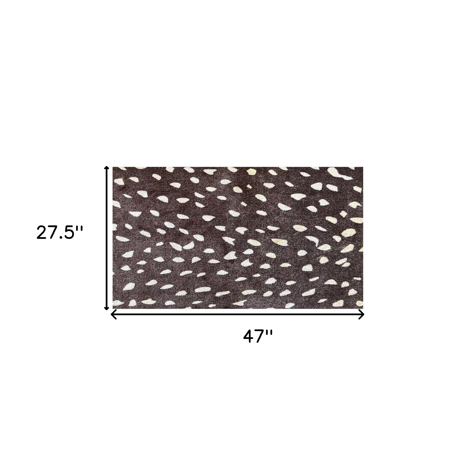 This 2' x 4' chocolate animal print machine tufted washable area rug with uv protection, is a great way to add warmth to a room. This rectangle shaped rug features a animal print design in chocolate to give it visual interest. A classic shape marries with good looking design for your space Ideal for spaces with kids and pets, this rug is stain resistant to help repel stains and spilled liquids. Place this area rug against a hardwood or tile floor and it will enliven your living space with style and sophistication. 0.25" H x 27.5" W x 47" D