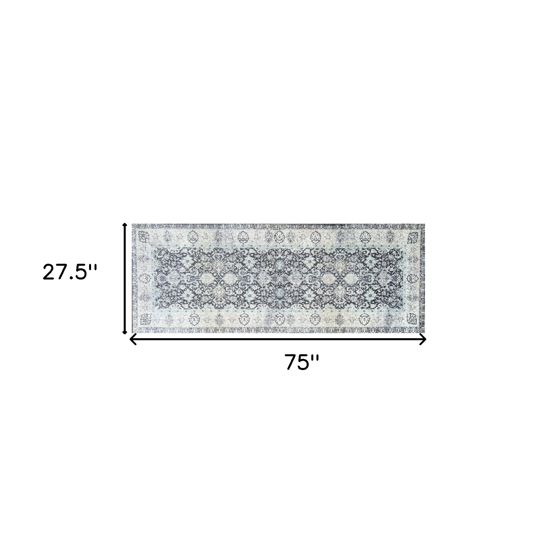 Add some artistry to your room with this 2' x 6' gray oriental machine tufted washable runner rug with uv protection. This runner shaped rug features a oriental design in gray to give it visual interest. A classic shape marries with good looking design for your space Ideal for spaces with kids and pets, this rug is stain resistant to help repel stains and spilled liquids. Place this area rug against a hardwood or tile floor and it will enliven your living space with style and sophistication. 0.25" H x 27.5" W x 75" D