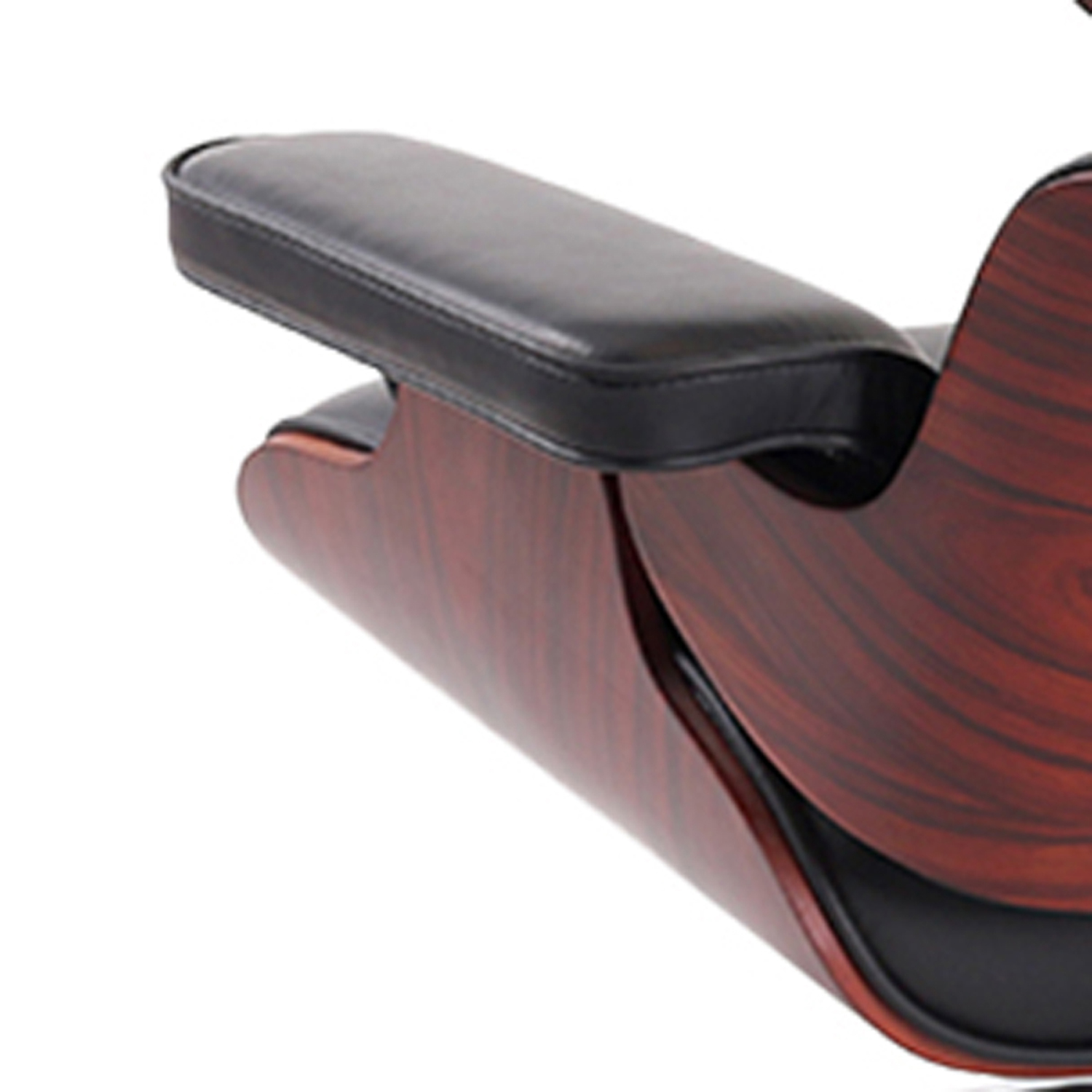 Fill your living room, bedroom, or office with fashionable seating options with this 35-inch black and dark brown genuine leather tufted swivel lounge chair with ottoman. Built to last this lounge chair is finished in solid black genuine leather to give your room a great update. Giving the chair stability and structure, the inner frame is constructed with high quality solid wood, includes comfy armrests, and features a tufted back that comes complete with soft and comfortable cushioning. The tufted cushions add fine designer detailing and are removable for convenience. A swivel feature allows this chair to turn, adding versatility to your seating. Comes complete with a coordinating ottoman to rest your feet. The ottoman can also be used as additional seating option if needed. 33-inch h x 34.6-inch w x 34.2-inch d.