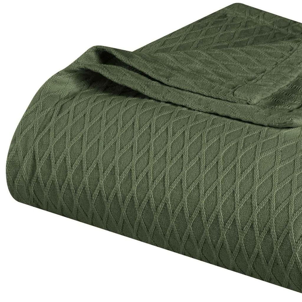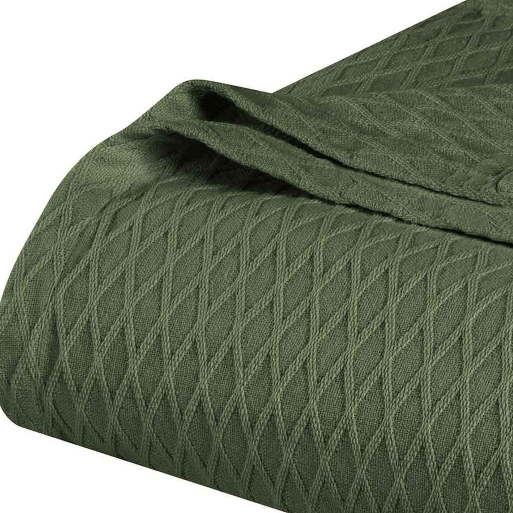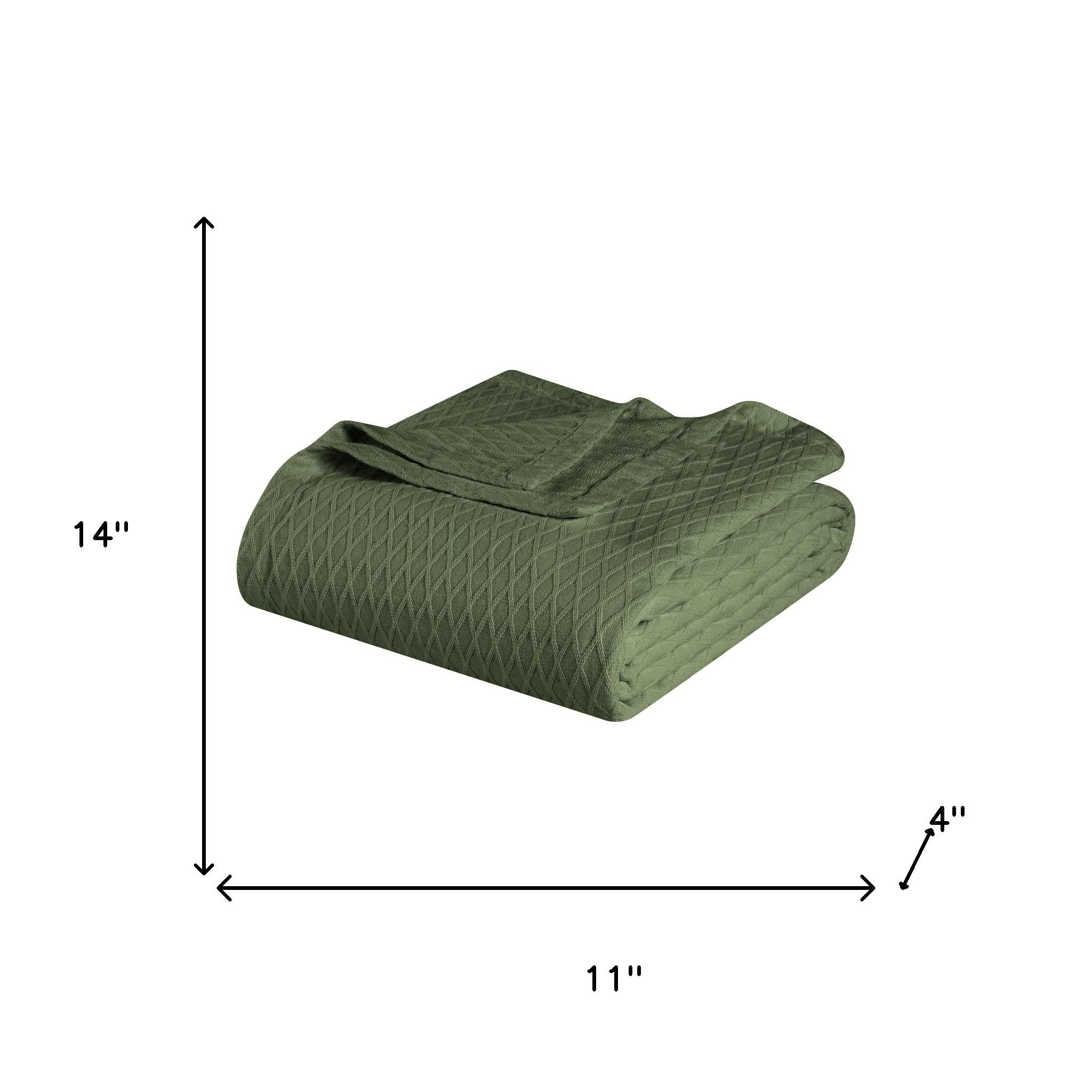 This king forest green cotton plain weave geometric blanket is a cozy and stylish addition to your bed ensemble. Super soft, and featuring timeless style, this cotton blanket offers cozy comfort for a good night's sleep all year long. Enhance your space and the quality of your sleep with this soft and comfortable blanket that helps regulate your core body temperature, helps you to relax, and ultimately fall to sleep. 14-inch h x 11-inch w x 4-inch d.