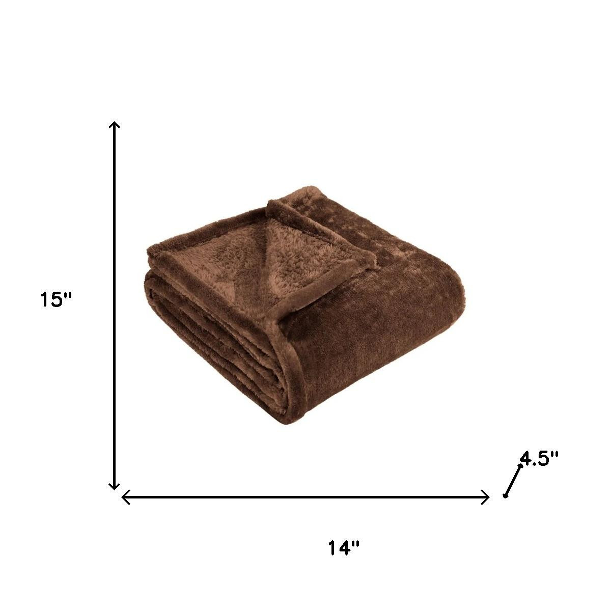 This plush throw, with its cozy softness, makes the perfect gift. Crafted with a plain weave technique, this lightweight fleece blanket is ideal for all seasons. Its chocolate backside color adds a touch of sophistication to any bedroom decor. Embracing a modern style, this throw is designed to enhance the ambiance of any room effortlessly. 15-inch h x 14-inch w x 4.5-inch d.