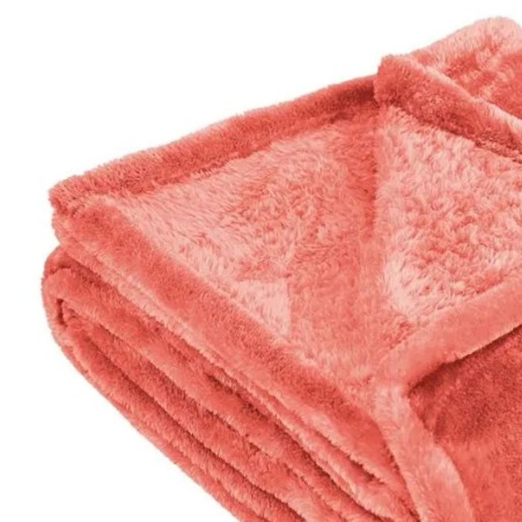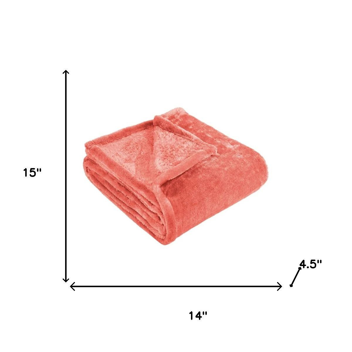 This plush throw, crafted with a plain weave technique, is not only cozy soft but also exquisitely giftable. Its lightweight fleece material makes it a versatile addition to any bedroom, bringing a touch of modern style with its coral color. Perfectly sized as a throw, this blanket's plush texture adds warmth and comfort without overwhelming the room. 15-inch h x 14-inch w x 4.5-inch d.