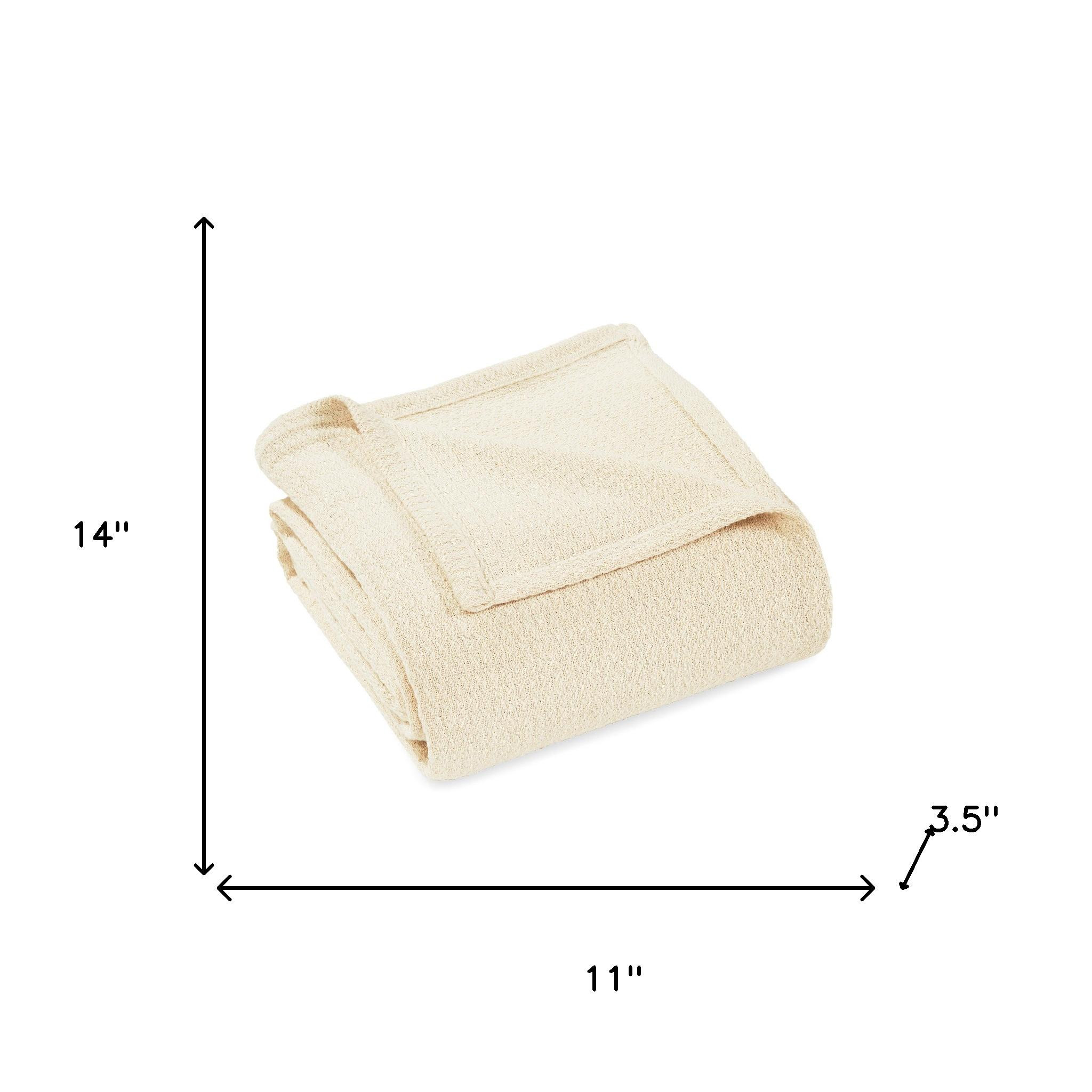 This queen ivory cotton waffle weave blanket is a cozy and stylish addition to your bed ensemble. A classic and timeless design combines with cozy comfy style so this cotton blanket can deliver you a restful and comfortable sleep all year long. Enhance your space and the quality of your sleep with this soft and comfortable blanket that helps regulate your core body temperature, helps you to relax, and ultimately fall to sleep. 14-inch h x 11-inch w x 3.5-inch d.