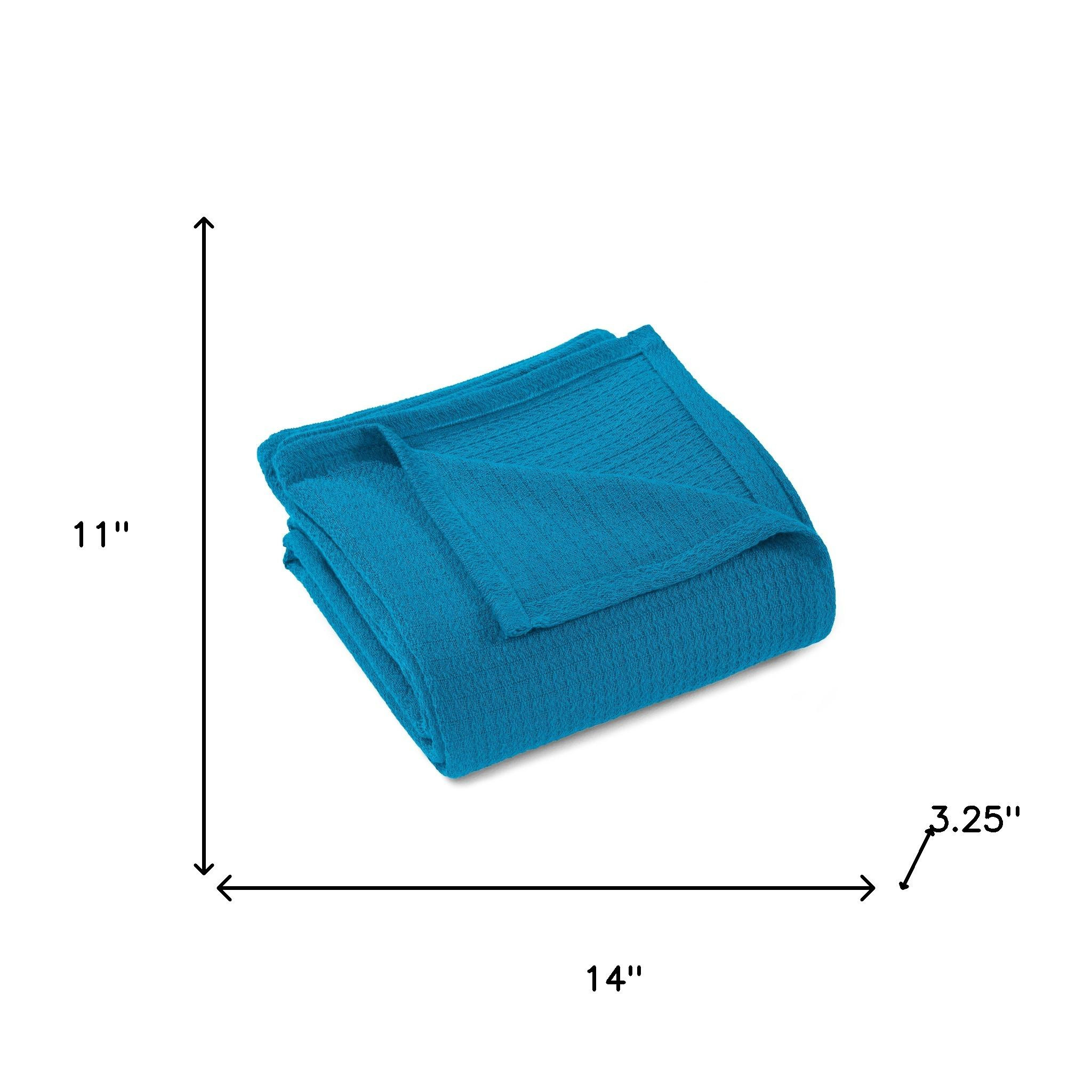 This twin azure cotton waffle weave blanket is a cozy and stylish addition to your bed ensemble, but can also be used on the sofa, in your office cubicle, or anywhere you need a warm and soft blanket. Super soft, and featuring timeless style, this cotton blanket offers cozy comfort for a good night's sleep all year long. Enhance your space and the quality of your sleep with this soft and comfortable blanket that helps regulate your core body temperature, helps you to relax, and ultimately fall to sleep. 11-inch h x 14-inch w x 3.25-inch d.