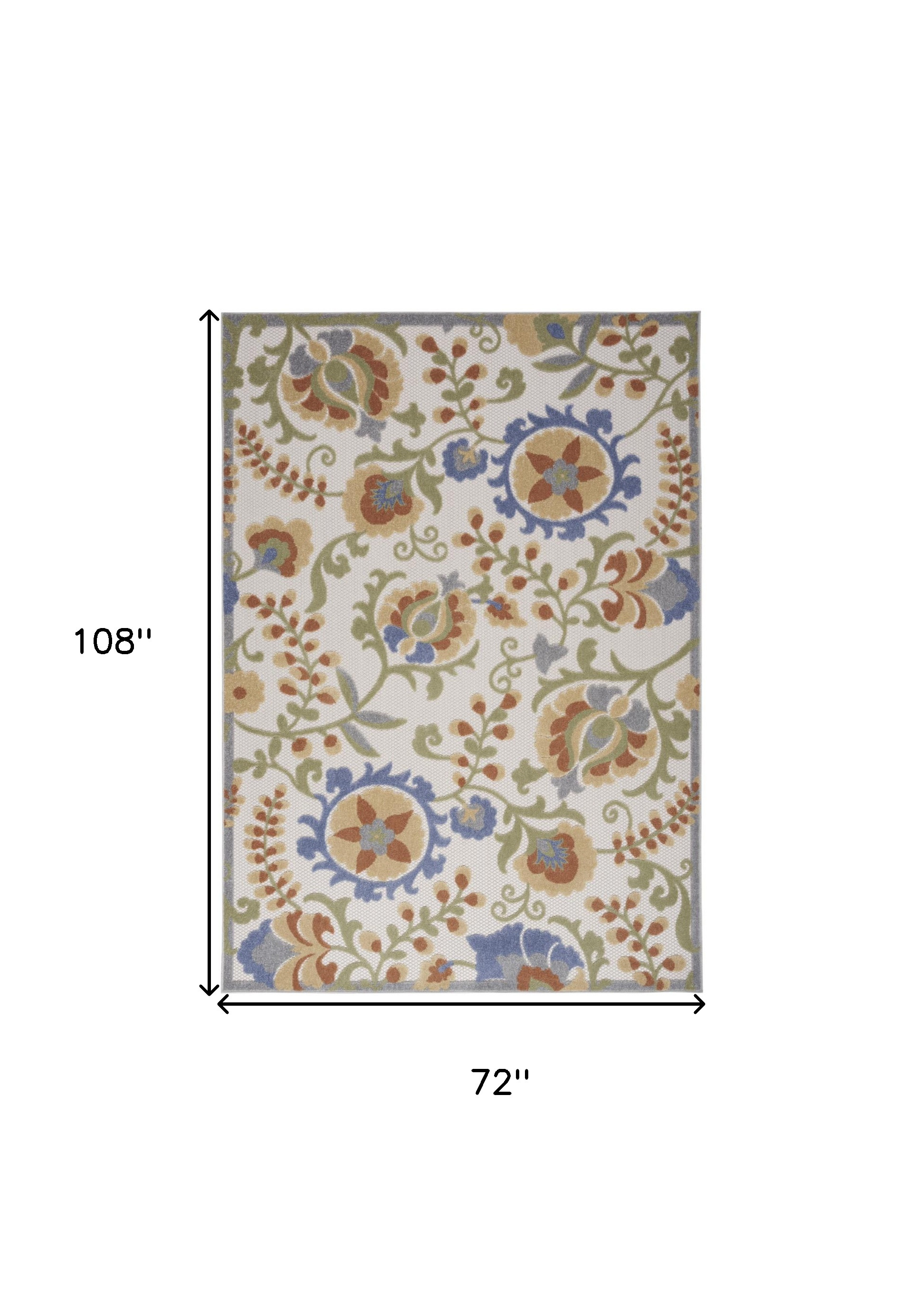 Add great coloration and comfortable texture to your space with this 6-foot x 9-foot ivory and blue indoor outdoor area rug. Versatile in use, durable, and easy to maintain, this rug is an ideal solution to add a decorative and inviting touch to your indoor or outdoor space. Crafted with precision using machine-made construction, this rectangular rug boasts a stylish design that enhances any setting while providing the perfect blend of comfort and elegance for your home. 72-inch h x 108-inch w x 0.25-inch d.