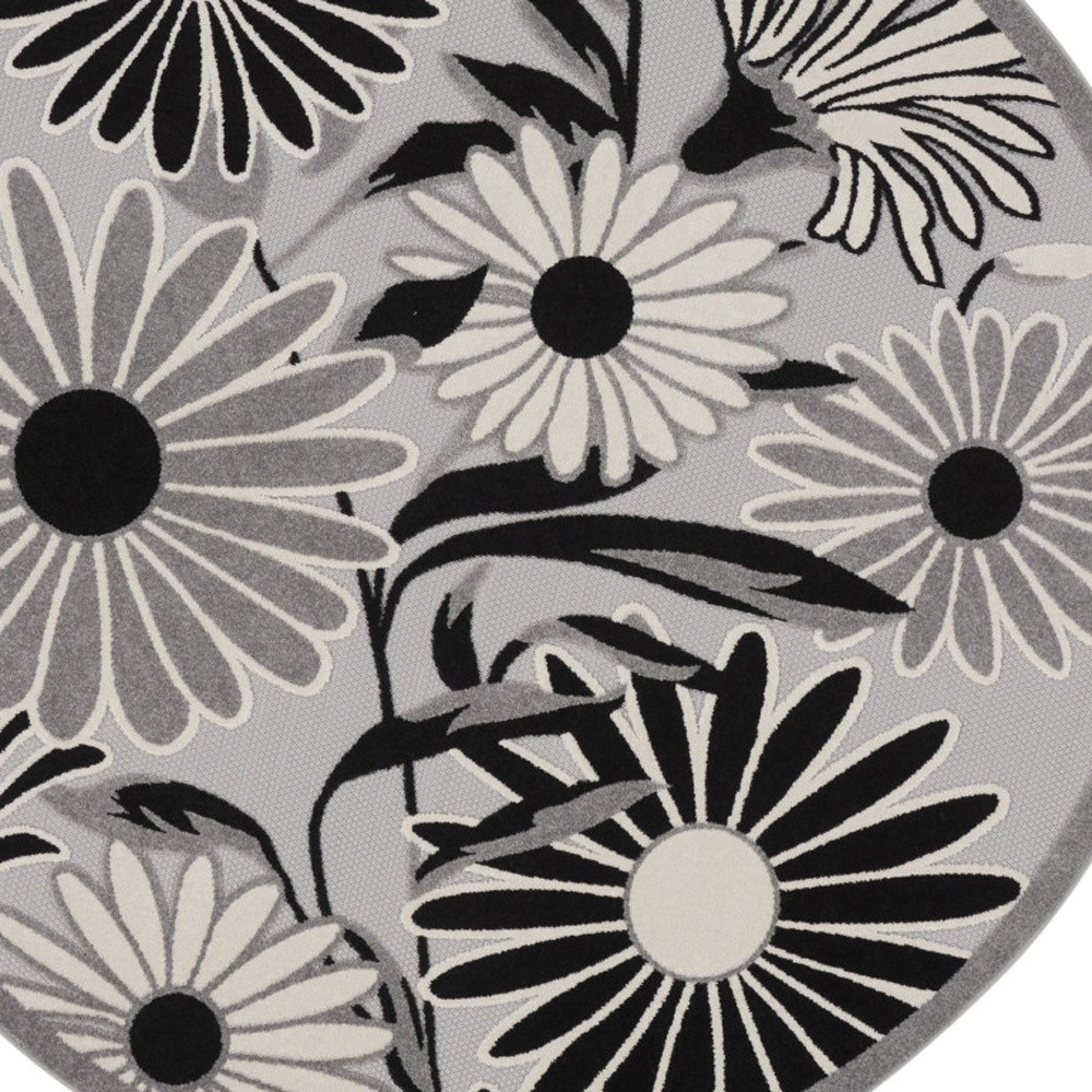 floral indoor outdoor area rug, indoor outdoor area rug, outdoor area rug, black white round floral indoor, floral indoor outdoor area |