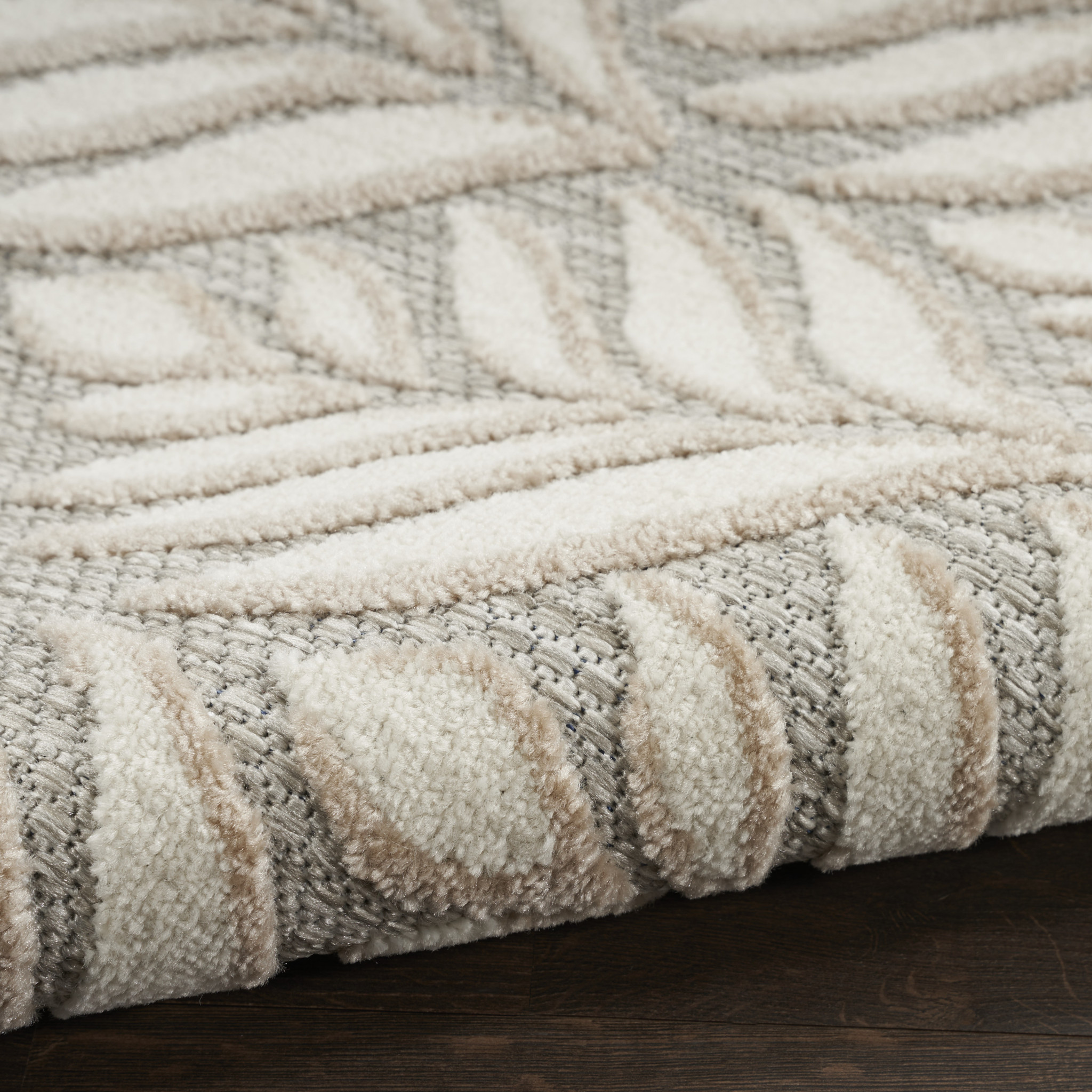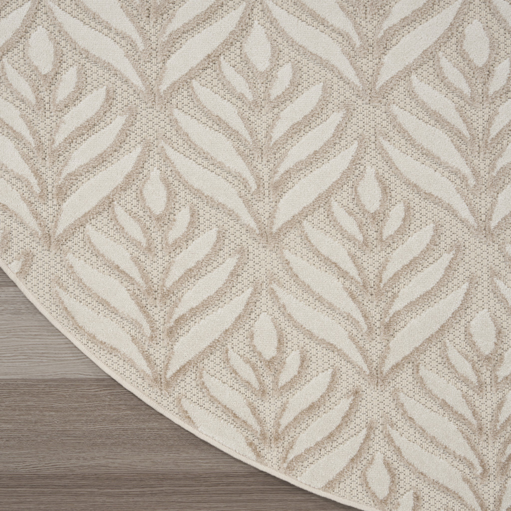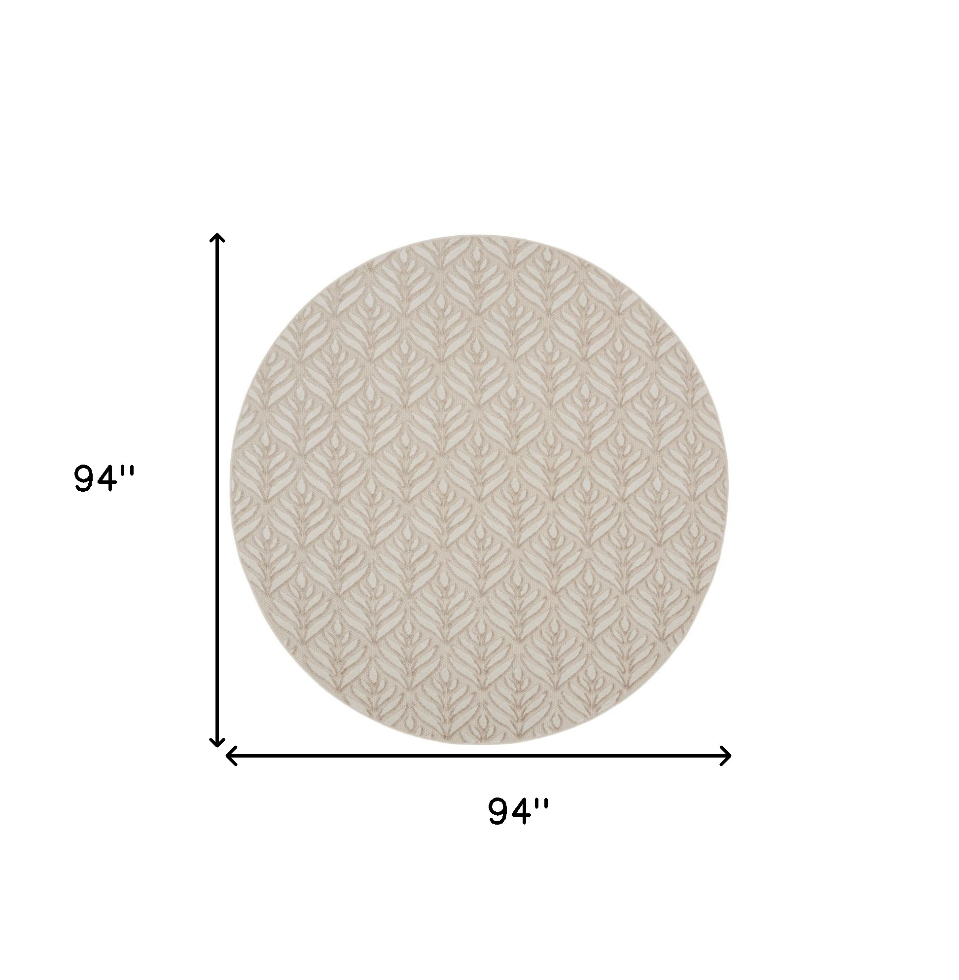 This 8-foot gray and ivory round floral indoor outdoor area rug, is a great way to add warmth to a room. This geometric round shaped rug features a floral pattern in gray and ivory that combines a good looking print with a unique and updated shape. The mix of shape, color, and design gives this rug refreshing visual interest. Makes a great way to dress up your patio, porch, or poolside, but also works well as a durable and easy to maintain option in the kitchen, family room, or mudroom. 94-inch h x 94-inch w x 0.25-inch d.