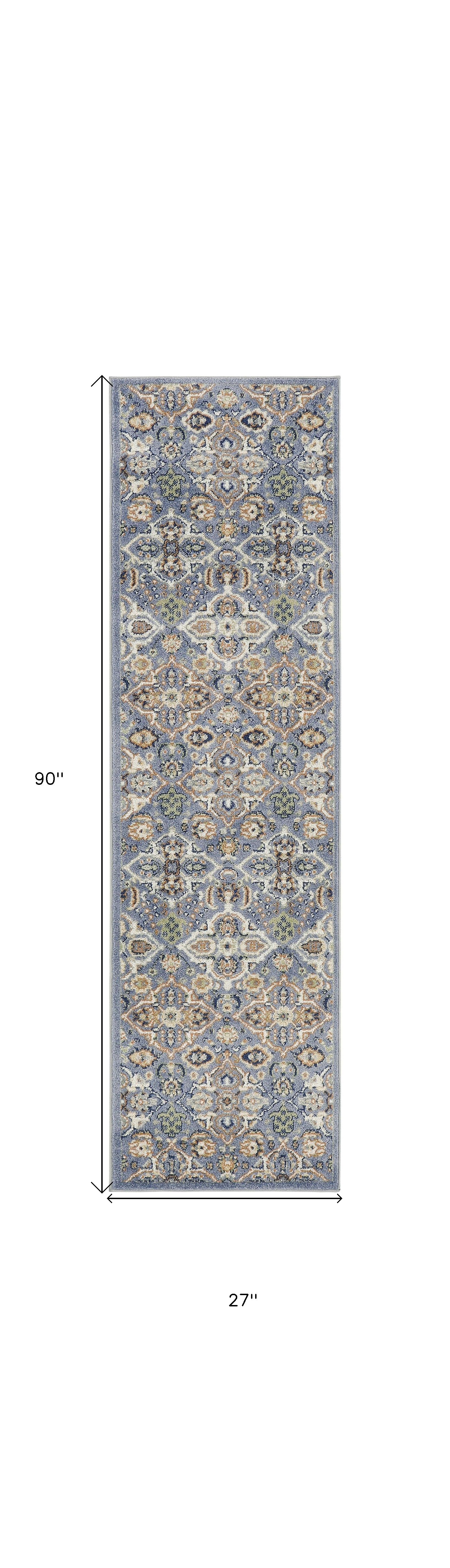 This 8' green and ivory floral power loom runner rug, is a great way to add warmth to a room. This runner shaped rug features a floral design in green and ivory to give it visual interest. A classic shape marries with good looking design for your space This superior Turkish rug represents the highest quality and is built to last. Place this area rug against a hardwood or tile floor and it will enliven your living space with style and sophistication. .25" H x 27.00" W x 90.00" D