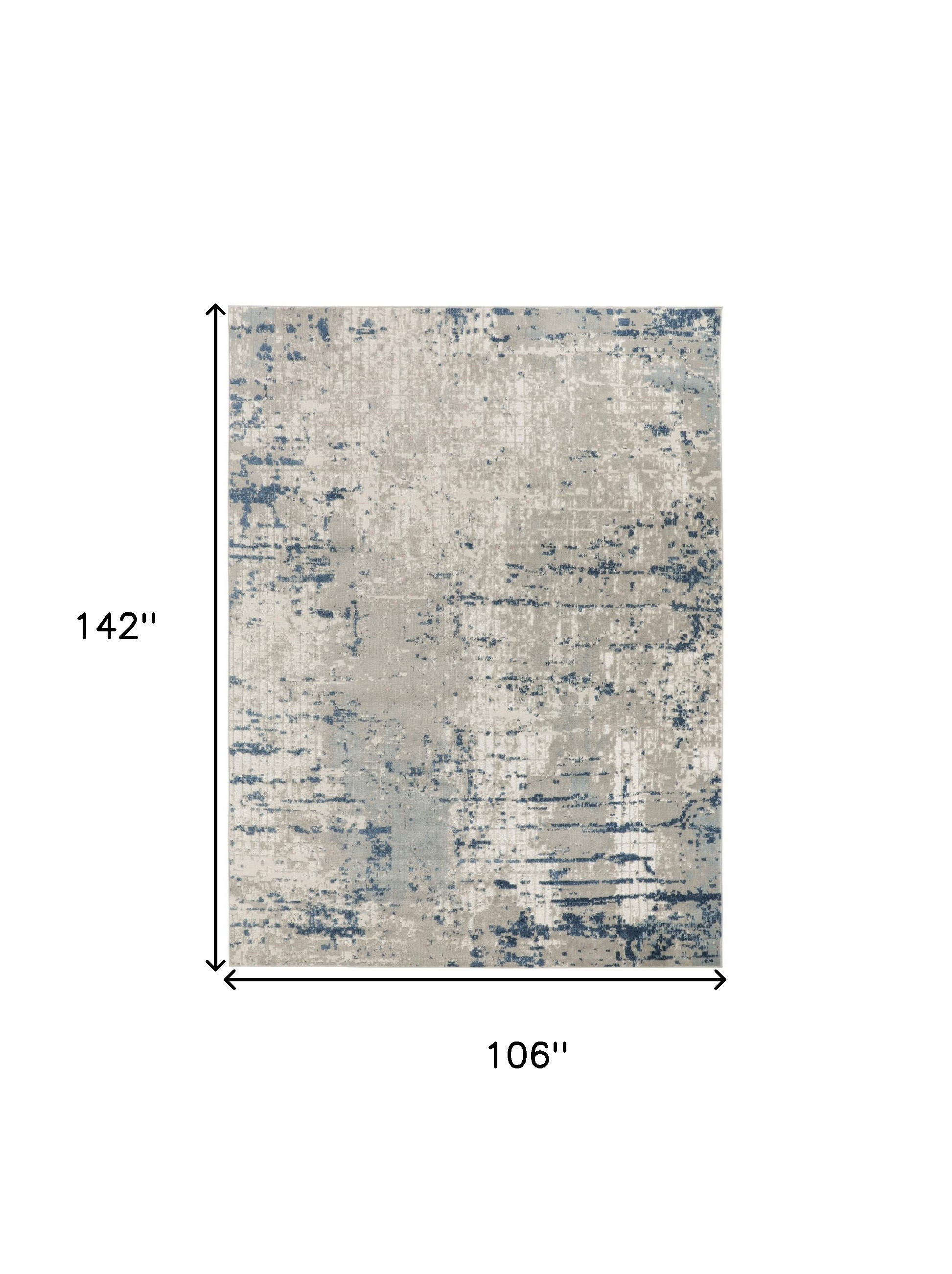 Add some artistry to your room with this 9-foot x 12-foot ivory gray and blue abstract distressed area rug. Built to last, this rug crafted from polypropylene and polyester fibers is known for its durability and long lasting appeal. Rugs are a great way to showcase your style, hide imperfections, warm your home and reduce noise. This larger sized, modern styled rug is ready to create a focal point or statement piece in your room. 106-inch h x 142-inch w x 0.32-inch d.