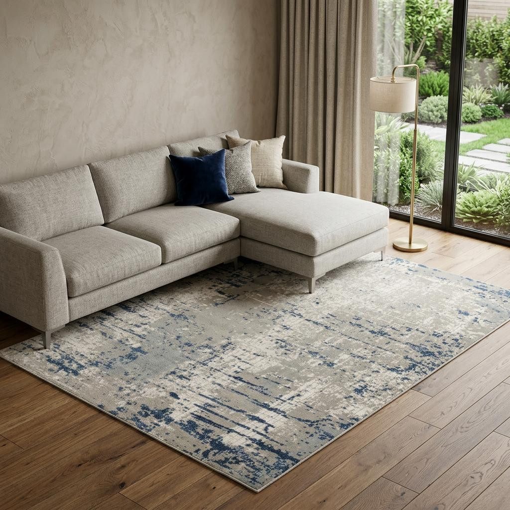 Add some artistry to your room with this 8' x 10' blue and gray abstract power loom area rug. This rectangle shaped rug features a abstract design in blue and gray to give it visual interest. A classic shape marries with good looking design for your space This superior Turkish rug represents the highest quality and is built to last. Place this area rug against a hardwood or tile floor and it will enliven your living space with style and sophistication. .32" H x 94.00" W x 118.00" D