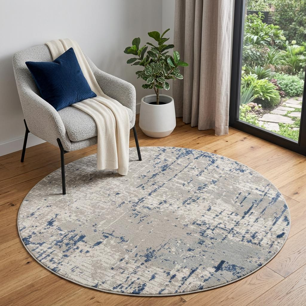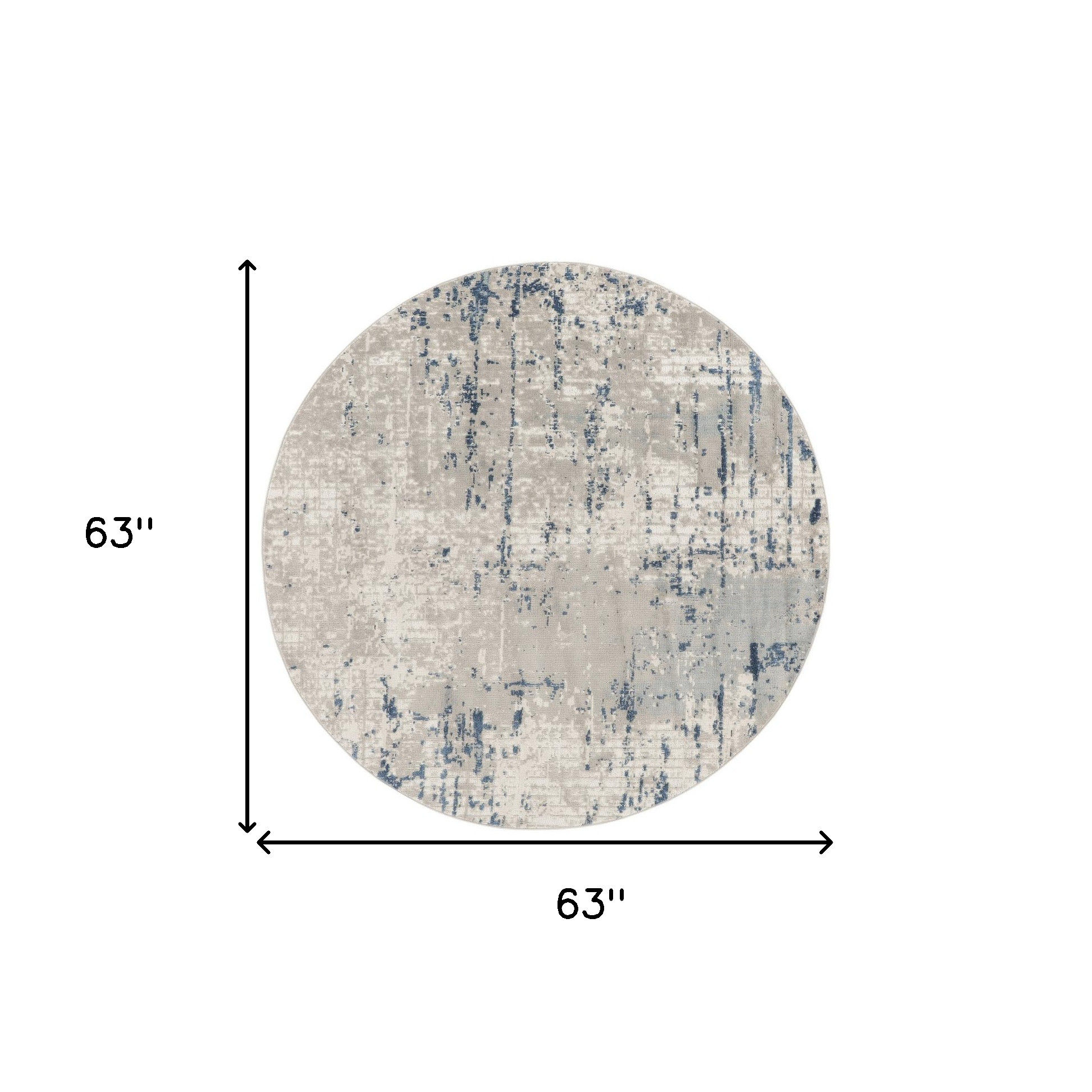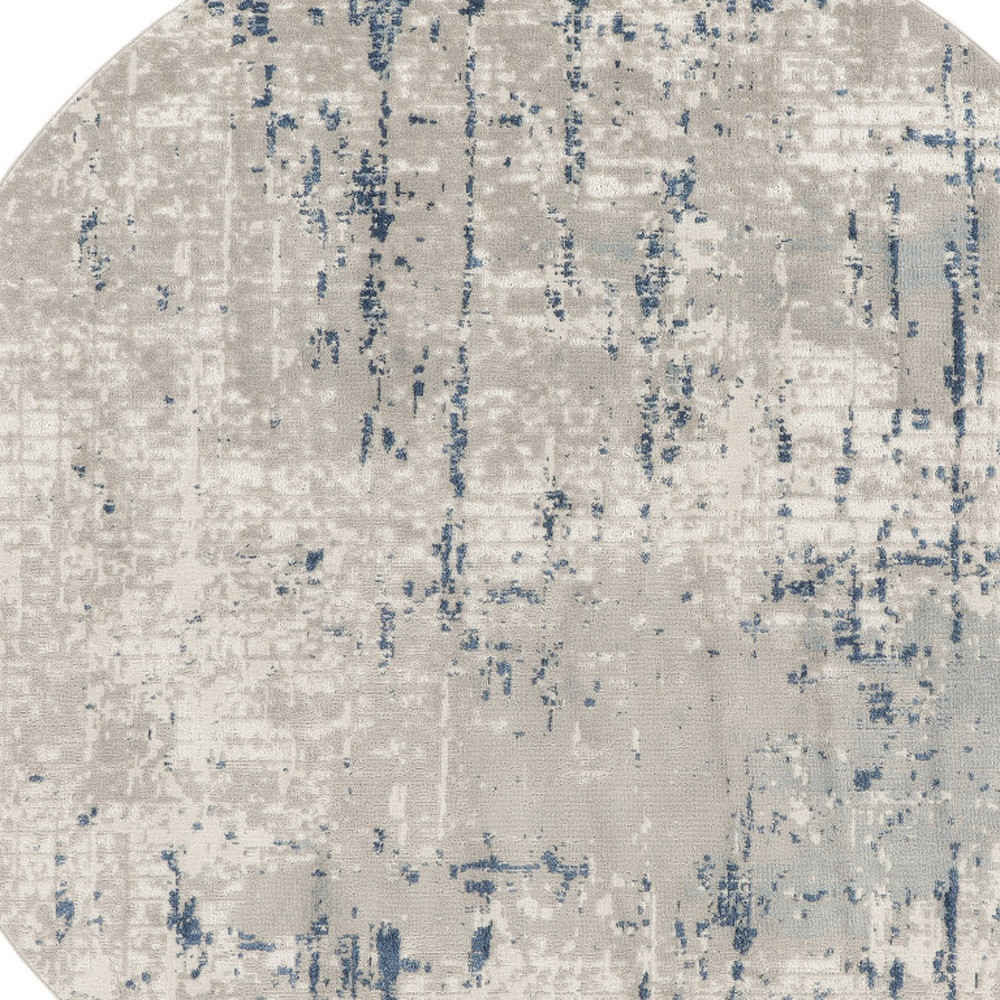 Add great coloration and comfortable texture to your space with this 5' blue and gray round abstract power loom area rug. This geometric round shaped rug features a abstract pattern in blue and gray that combines a good looking print with a unique and updated shape. The mix of shape, color, and design gives this rug refreshing visual interest. Made in Turkey, this rug offers high quality combined with good looking designer sensibilities. Place this area rug against a hardwood or tile floor and it will enliven your living space with style and sophistication. .32" H x 63.00" W x 63.00" D