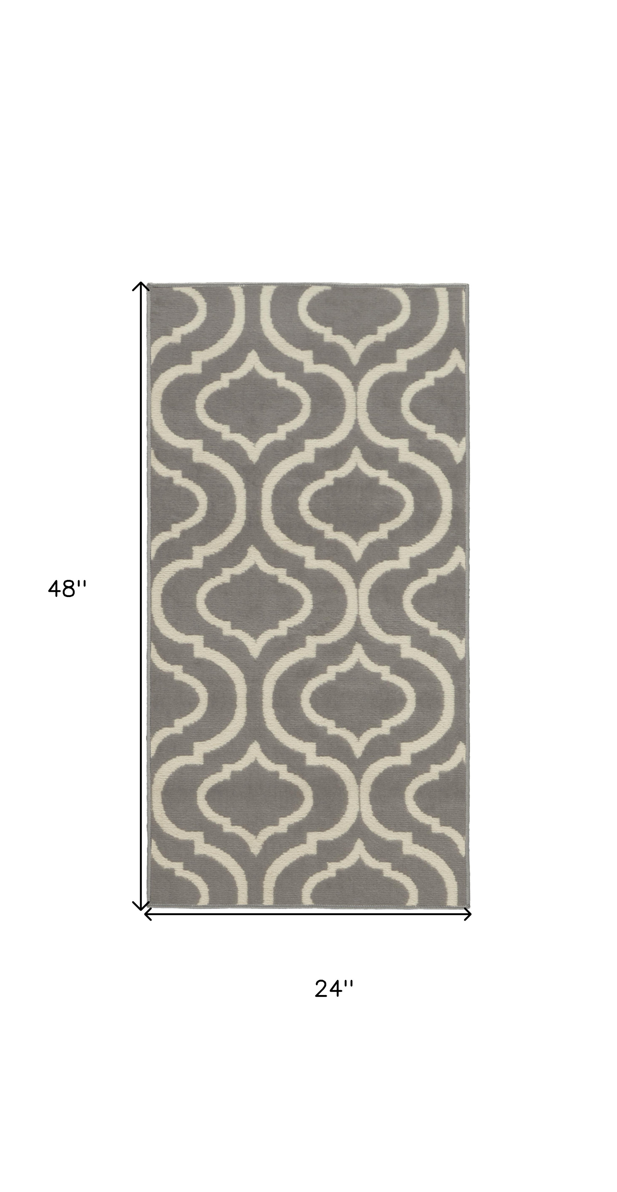 Add great coloration and comfortable texture to your space with this 2' x 4' gray moroccan power loom area rug. This rectangle shaped rug features a moroccan design in gray to give it visual interest. A classic shape marries with good looking design for your space Made in Turkey, this rug offers high quality combined with good looking designer sensibilities. Place this area rug against a hardwood or tile floor and it will enliven your living space with style and sophistication. .50" H x 24.00" W x 48.00" D