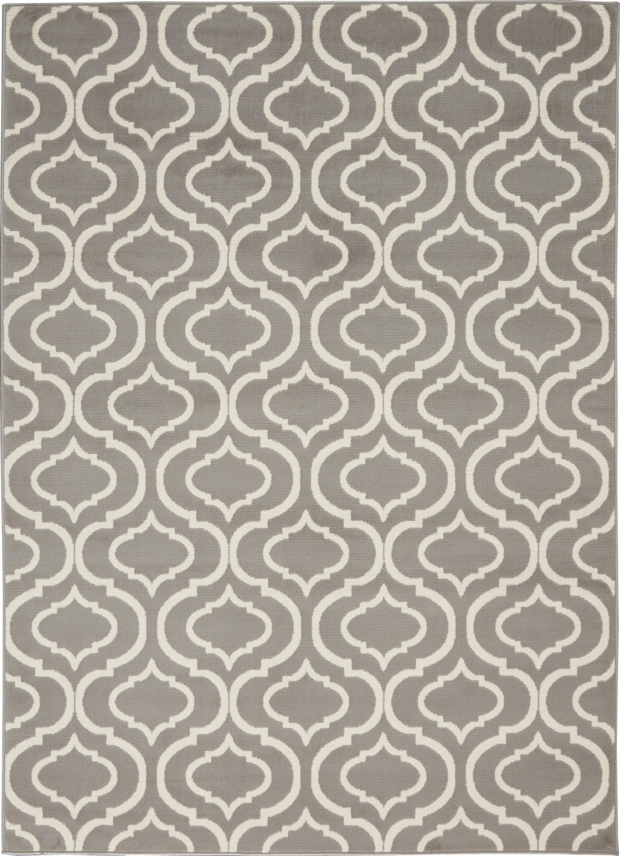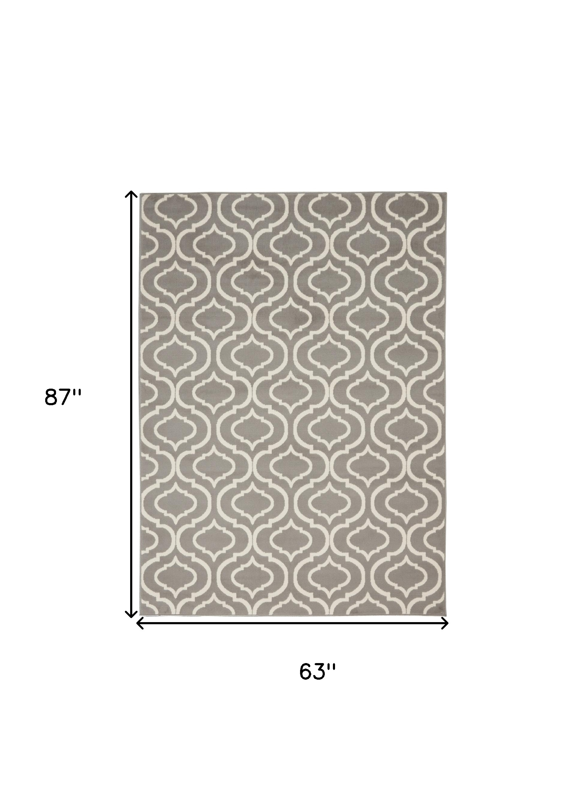 Add great coloration and comfortable texture to your space with this 5' x 7' gray moroccan power loom area rug. This rectangle shaped rug features a moroccan design in gray to give it visual interest. A classic shape marries with good looking design for your space Made in Turkey, this rug offers high quality combined with good looking designer sensibilities. Place this area rug against a hardwood or tile floor and it will enliven your living space with style and sophistication. .50" H x 63.00" W x 87.00" D