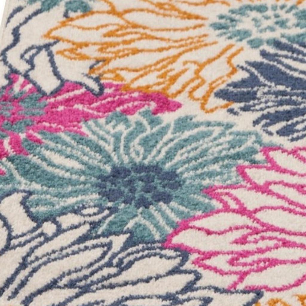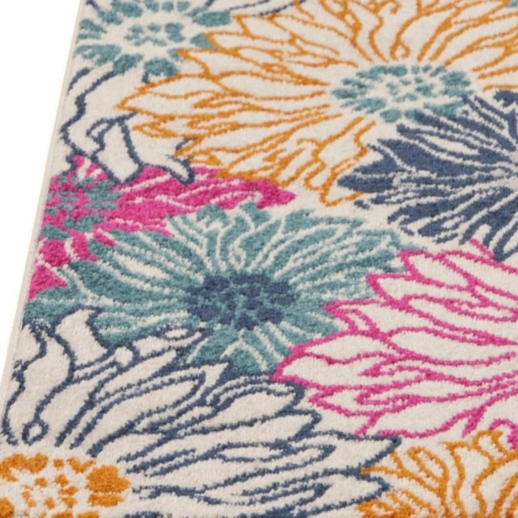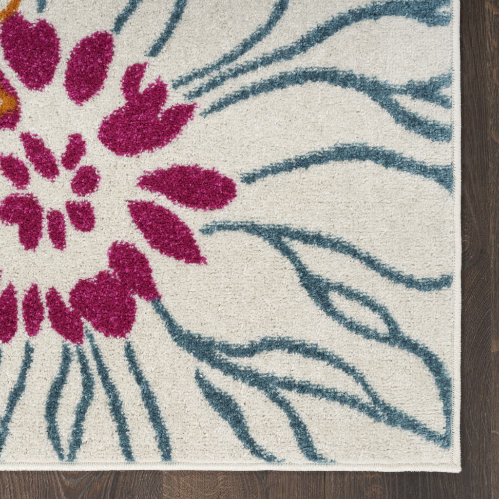 This 10-foot ivory and blue floral runner rug, is a great way to add warmth to a room. Built to last, this rug crafted from polypropylene fibers is known for its durability and long lasting appeal. Rugs are a great way to showcase your style, hide imperfections, warm your home and reduce noise. This rectangular shaped rug features a abstract design that will add a functional and decorative accent to your space. This contemporary style runner makes a great accent for the hallway, in front of cabinets, in the laundry room, or any other space you need a narrow and long rug. 26-inch h x 120-inch w x 0.5-inch d.