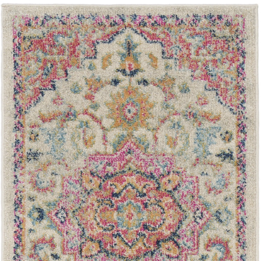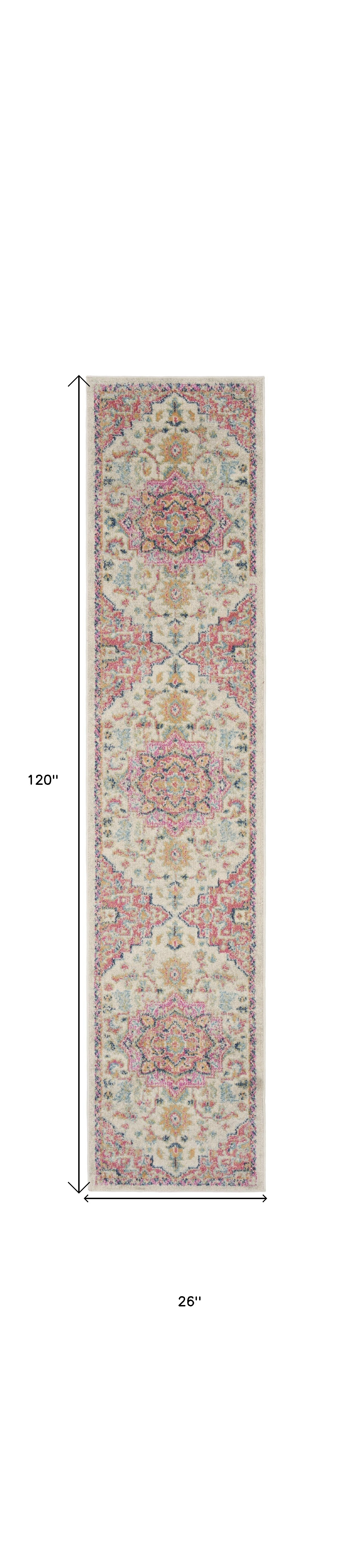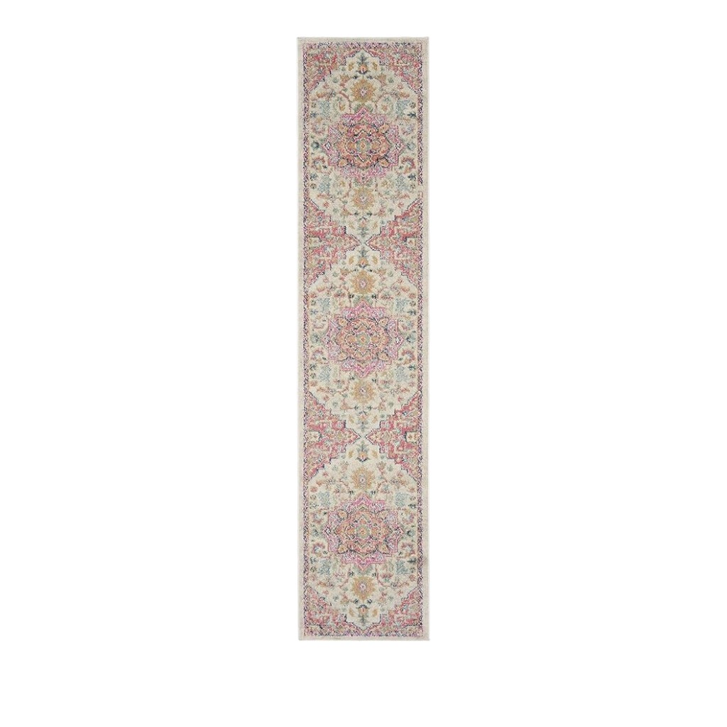 This 10-foot pink and ivory oriental power loom runner rug, is a great way to add warmth to a room. This runner shaped rug features a oriental design in pink and ivory to give it visual interest. A classic shape marries with good looking design for your space area rugs help to give warmth and sense of home to your space. .50-inch H x 26.00-inch W x 120.00-inch D