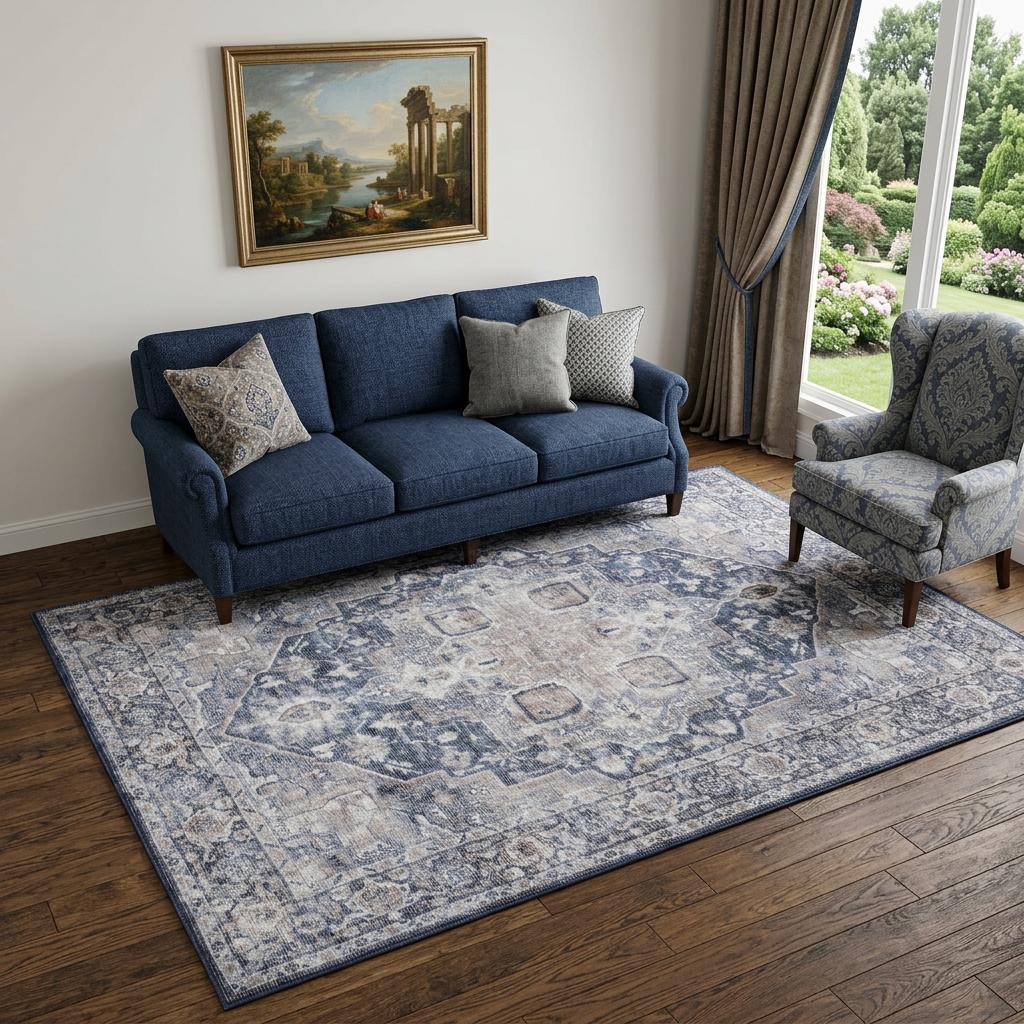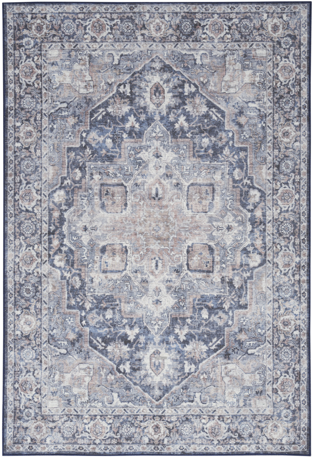 Set an inviting tone in your space with this 5' x 7' blue and pink floral power loom distressed washable area rug. This rectangle shaped rug features a floral design in blue and pink to give it visual interest. A classic shape marries with good looking design for your space This superior Turkish rug represents the highest quality and is built to last. Area Rugs help to give warmth and sense of home to your space. .28" H x 63.00" W x 87.00" D