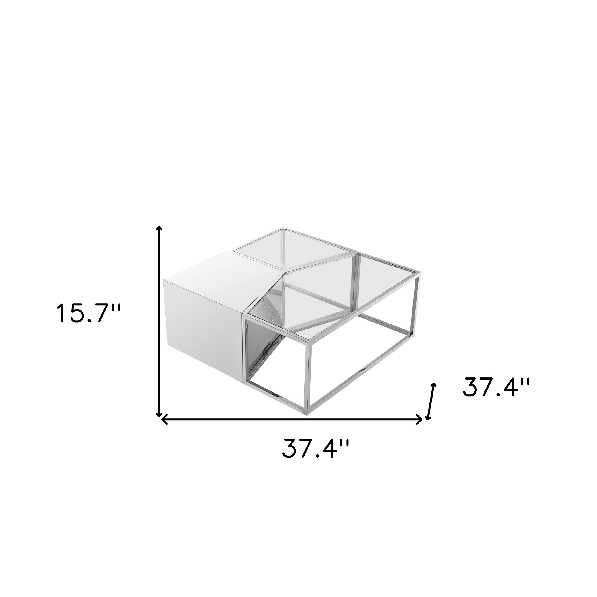 Increase your decorating options with this set of three 37-inch clear and silver glass and stainless steel square mirrored bunching coffee tables that will enhance your space. This trio gives you lots of options to decorate and accent in style. These good looking and handy tables can be used together or seaprately as you choose. A silver stainless steel frame is finished off with a clear glass top that is the epitome of quality construction and design. Reflective pieces of mirrored glass give this table a glamorous and unique look. This square table features a fresh and stylish shape to give your room a visually pleasing accent. It has a fresh design that will definitely breathe some fresh air into your interior. This coffee table is the sturdy, reliable and stylish answer to your living room needs. 15.7-inch H x 37.4-inch W x 37.4-inch D