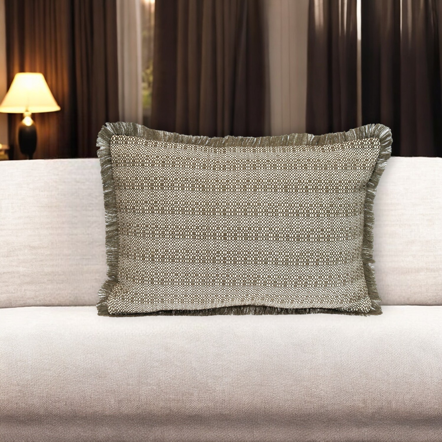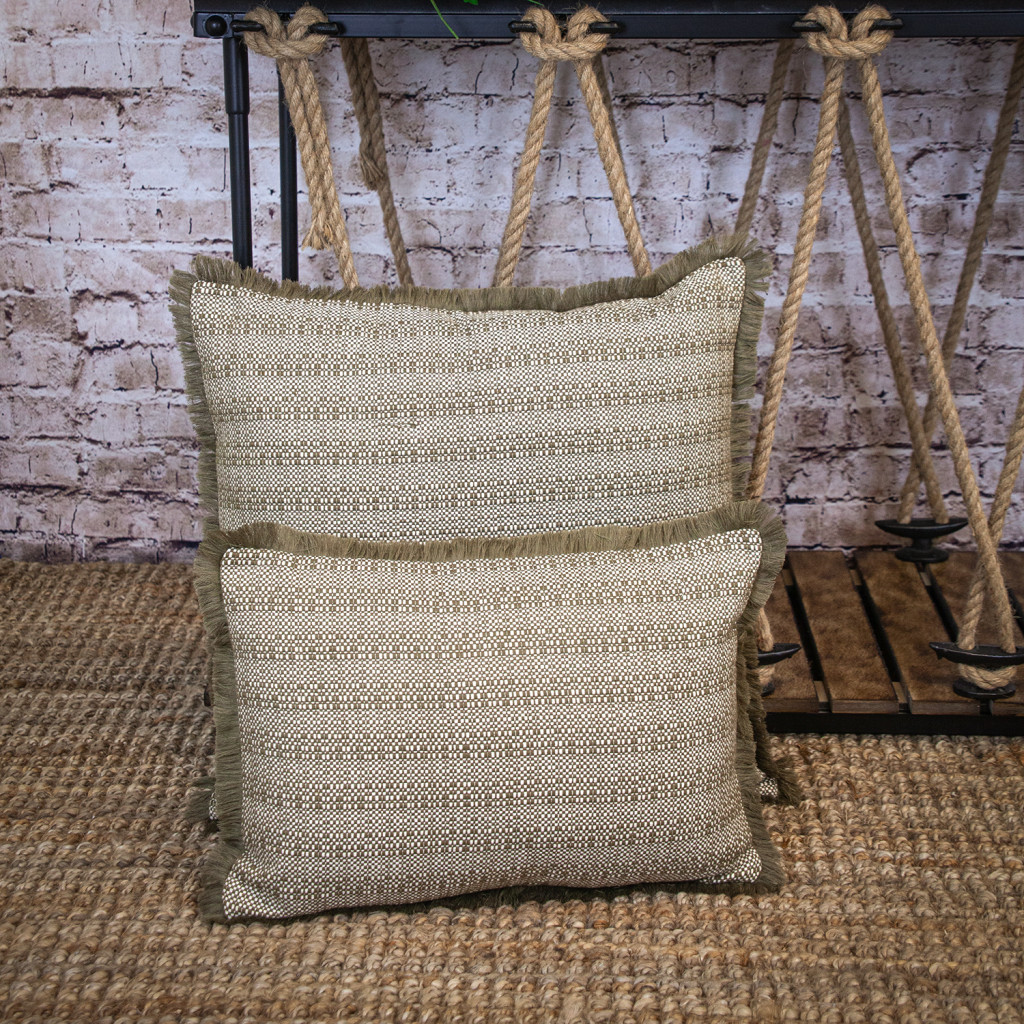 green white cotton pillow fringe, white cotton pillow fringe, white cotton pillow fringe edges, cotton pillow fringe, 14" X 20" green white cotton pillow |
