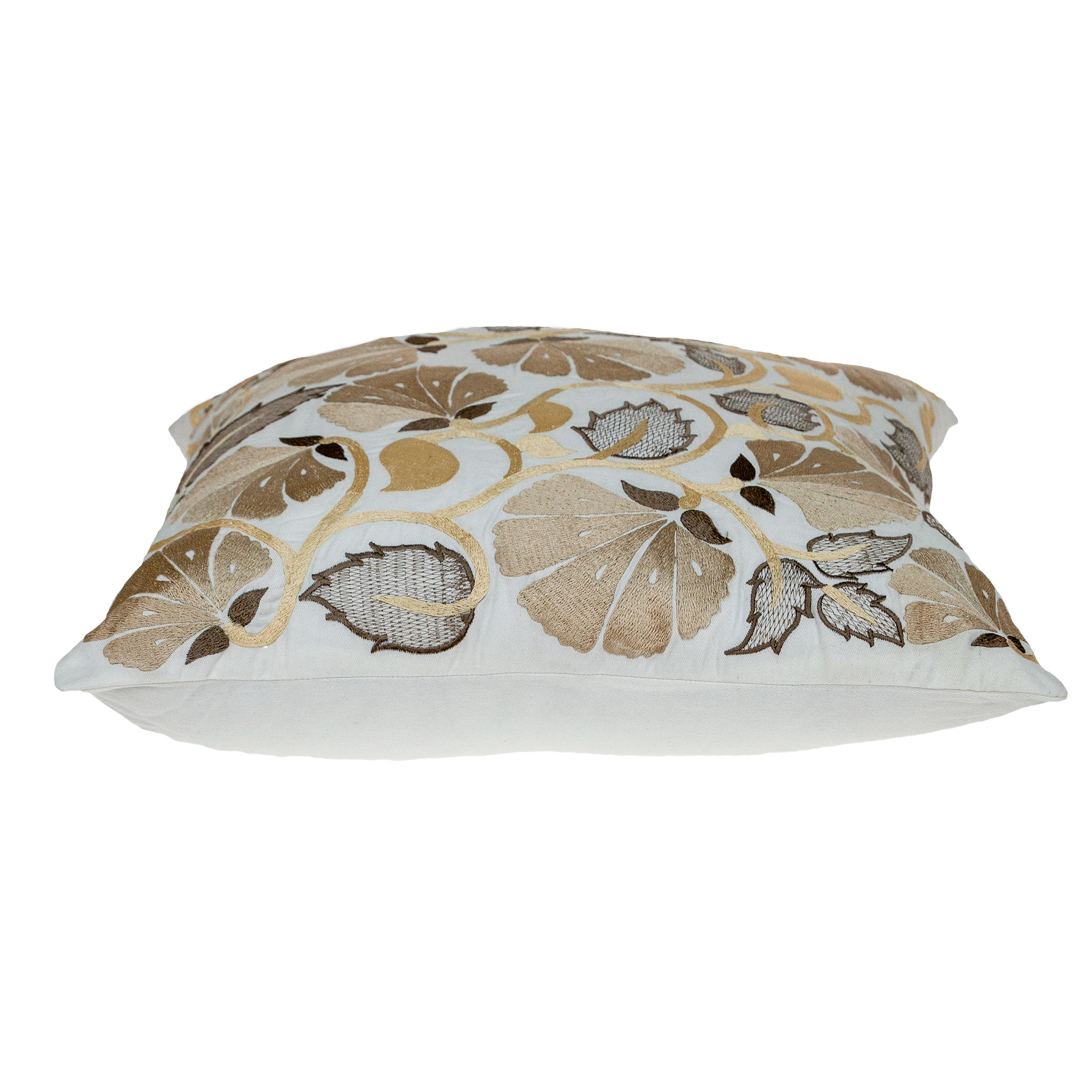 Unique and decorative, this comfortable 22-inch gold and white floral cotton throw pillow with embroidery will leave a lasting impression. This gold and white colored decorative pillow is made from high grade cotton that is durable and long lasting. This soft polyfill filled pillow not only is decorative but made to be comfy and cozy all day long. Great to use on its own or mix with other decorations for the perfect look. Decorative pillows are a great way to change up the look and feel of your space easily and quickly. 22-inch H x 22-inch W x 6-inch D