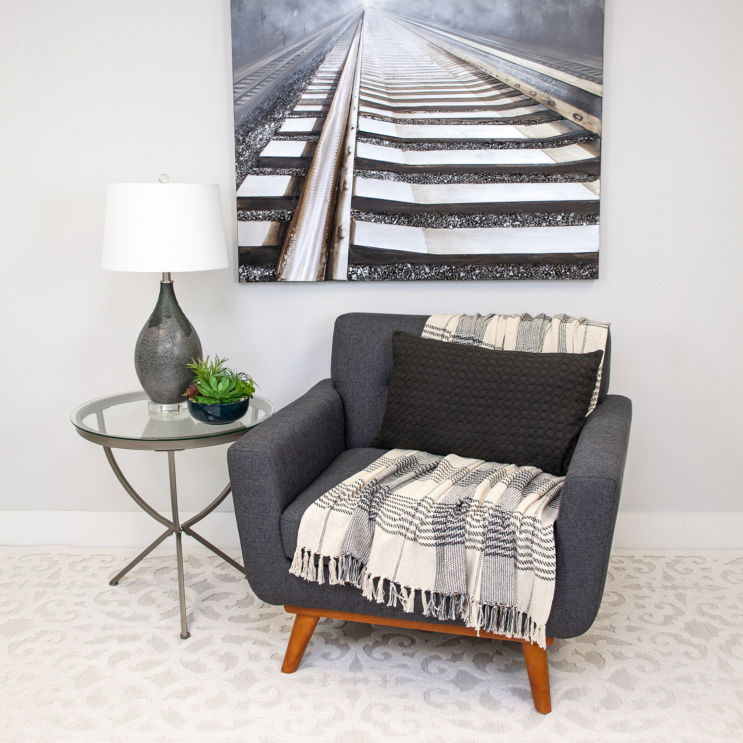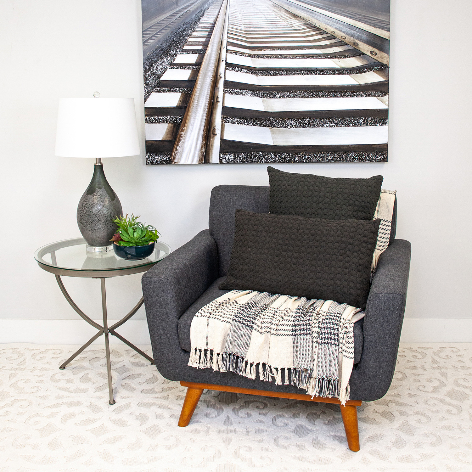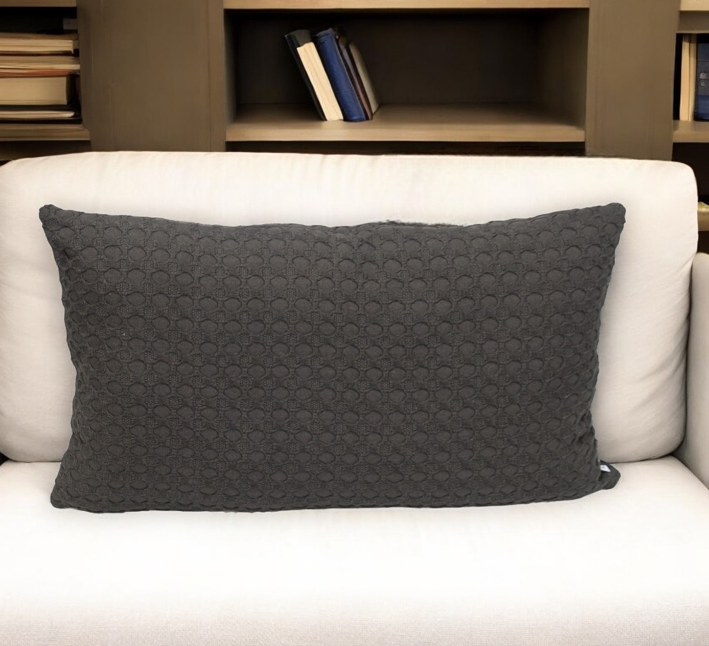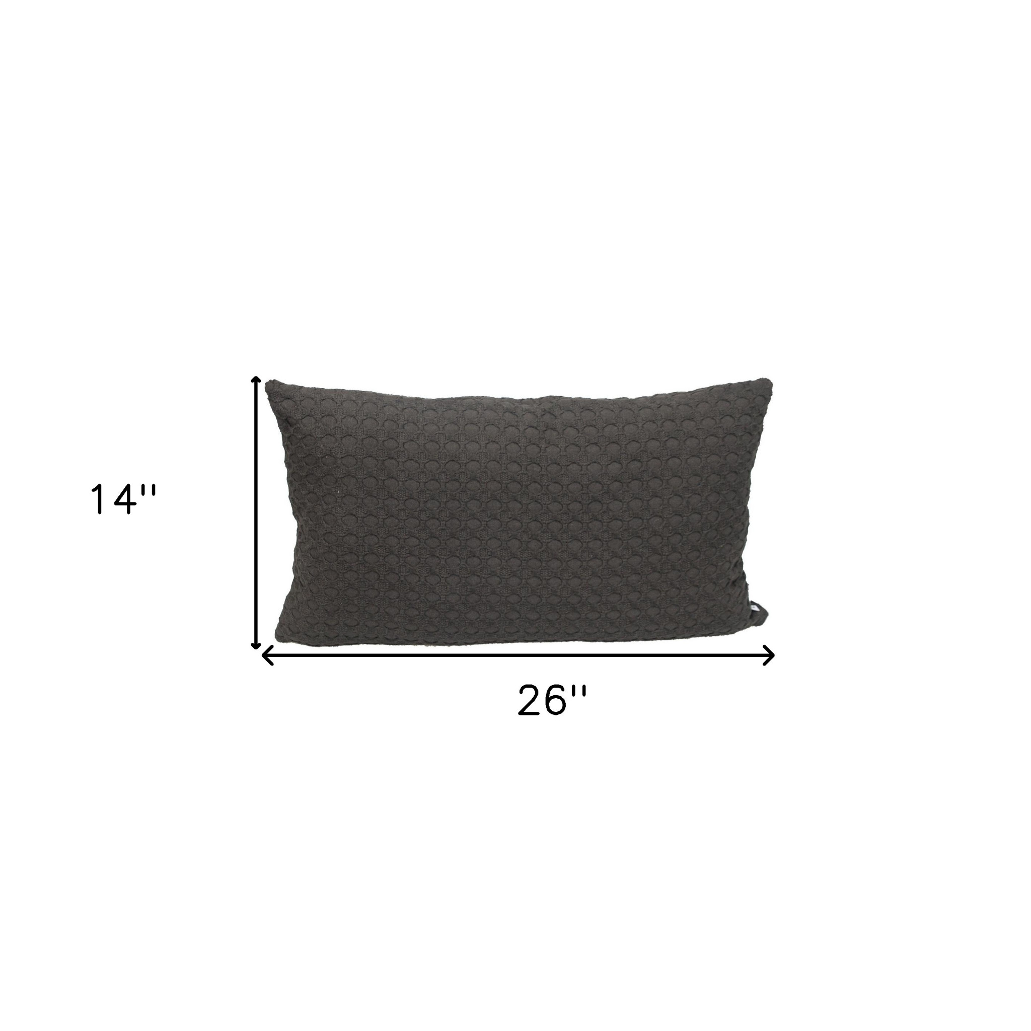 Add an air of fashion to your room and rejuvenate the space with this cute and fashionable 14-inch x 26-inch dark gray cotton lumbar throw pillow with texture. Durable dark gray cotton has been used to give this pillow a beautiful look that will stand the test of time. This soft polyfill filled pillow not only is decorative but made to be comfy and cozy all day long. Great to use on its own or mix with other decorations for the perfect look. Decorative pillows are a great way to change up the look and feel of your space easily and quickly. 14-inch h x 26-inch w x 0.5-inch d