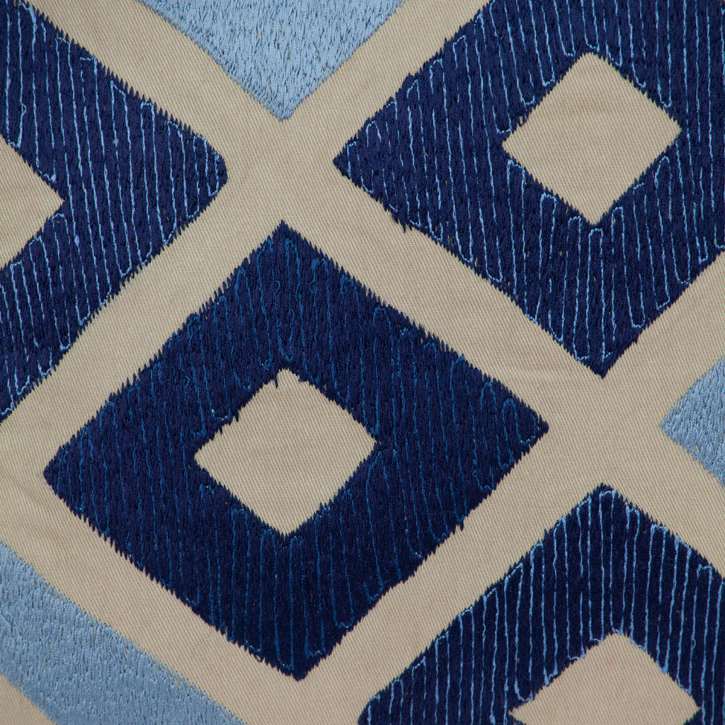 beige blue cotton pillow embroidery, blue cotton pillow embroidery, blue cotton pillow embroidery edges, cotton pillow embroidery, 18" beige blue cotton pillow |