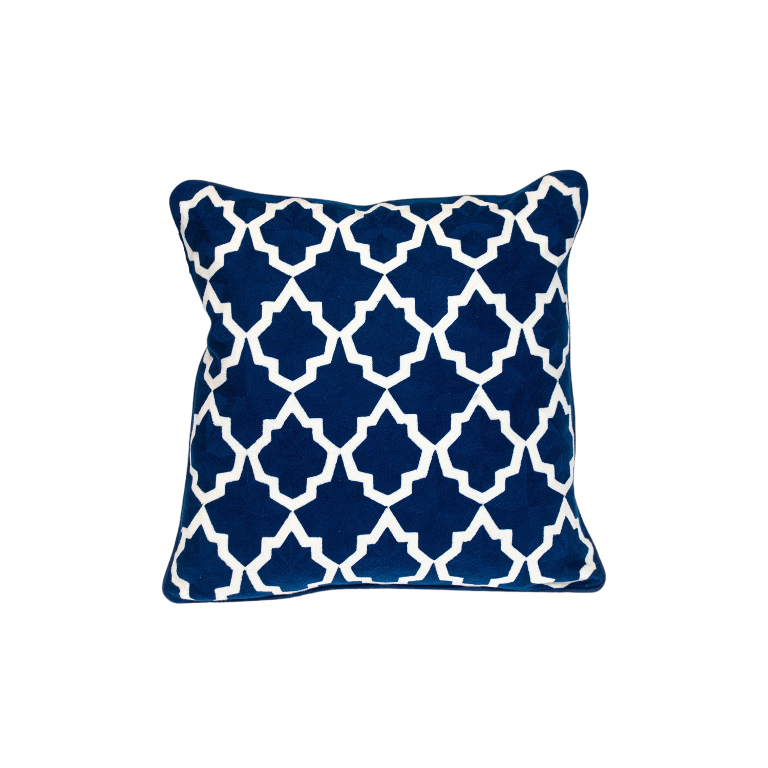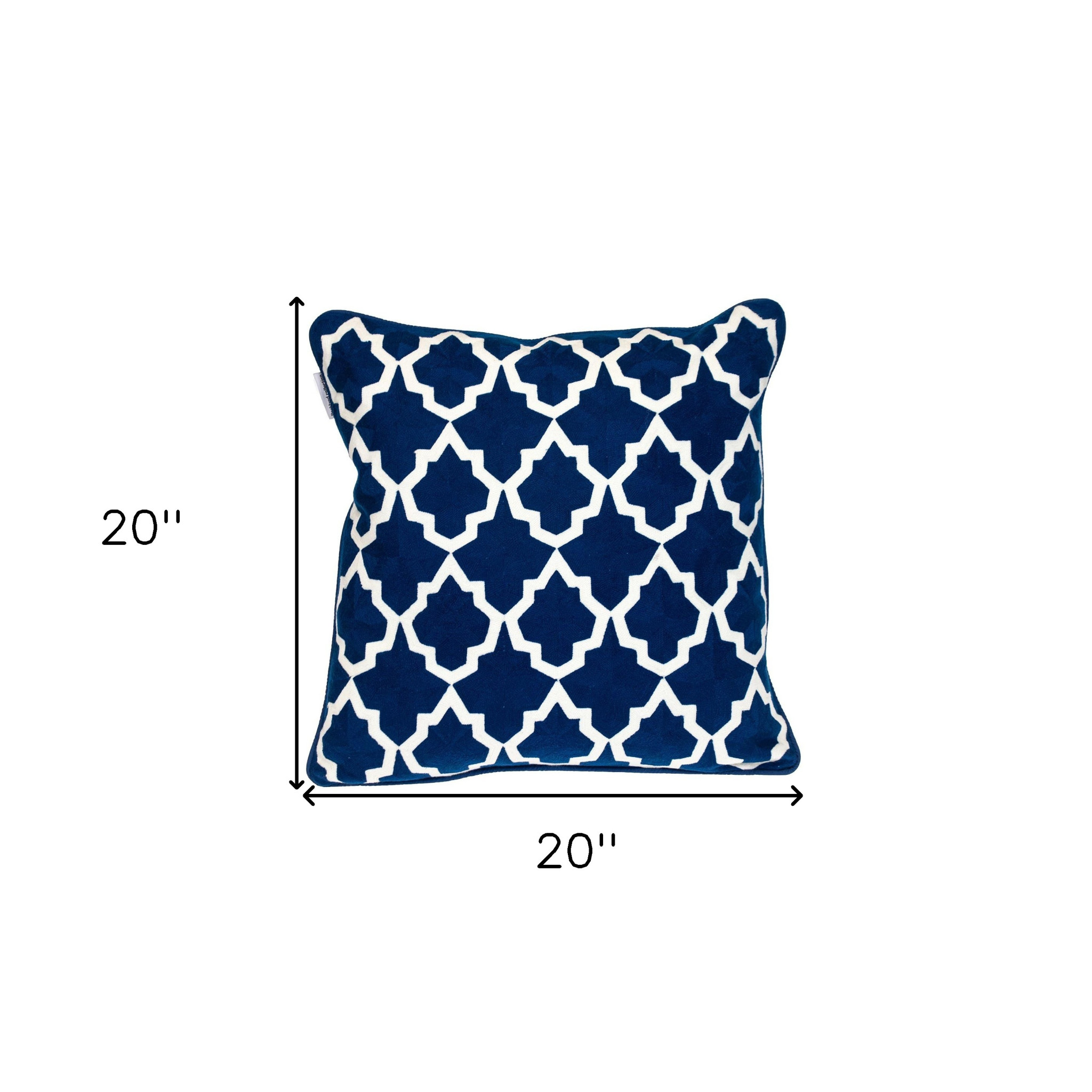 Bring a bit of fashion and zip to your space with this eye-catching and comfy 20-inch blue and white geometric cotton throw pillow. The blue and white coloring of the extremely durable and long lasting cotton will add dimension and texture to your space. This soft polyfill filled pillow not only is decorative but made to be comfy and cozy all day long. Great to use on its own or mix with other decorations for the perfect look. A great decorative accessory for your favorite chair, to accent your sofa, or to use as part of your bed ensemble. 20-inch H x 20-inch W x 0.5-inch D