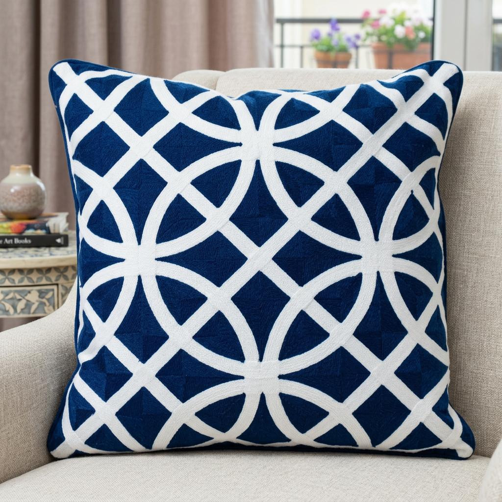 white geometric cotton throw pillow, geometric cotton throw pillow, cotton throw pillow, 20" blue white geometric cotton, blue white geometric cotton throw |