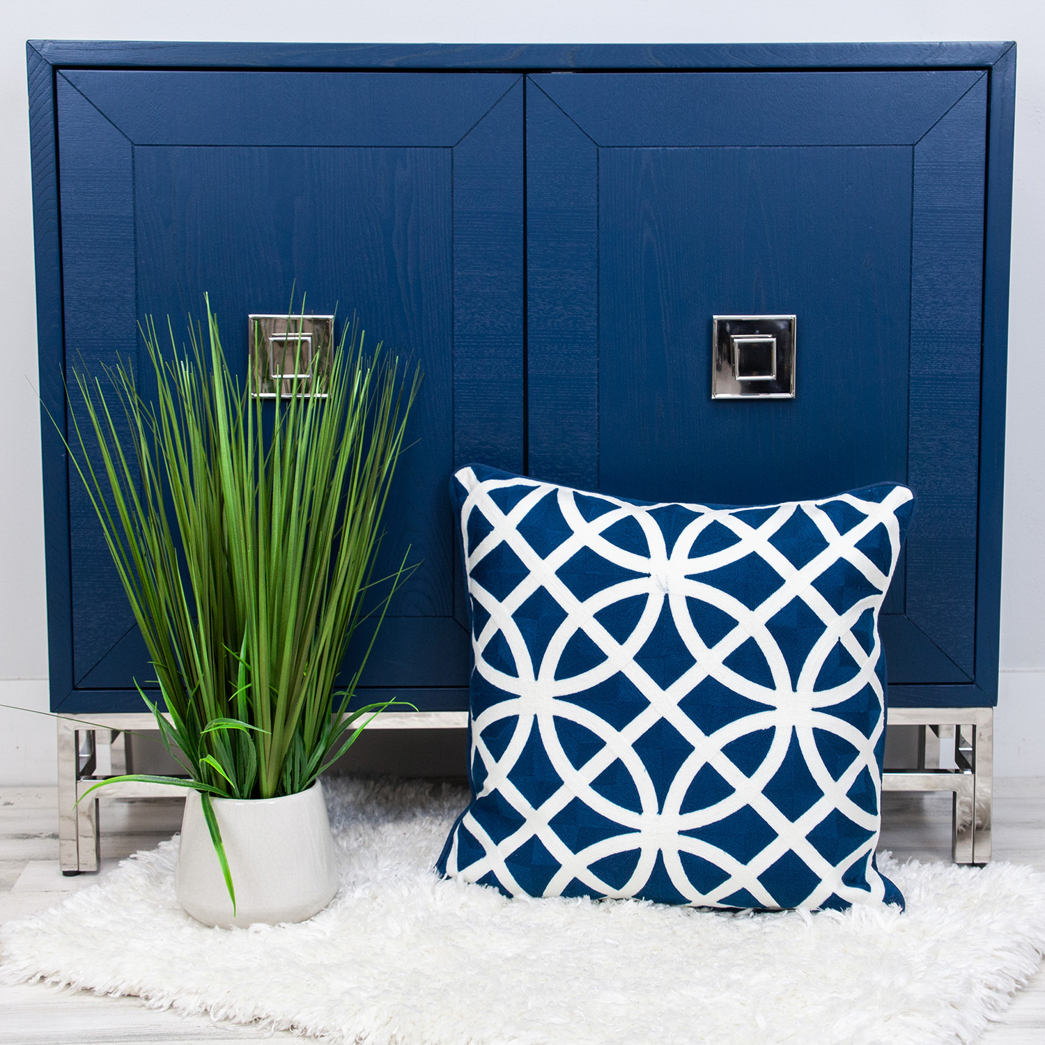 The 20-inch blue and white geometric cotton throw pillow is the perfect decorative accessory for your home. Durable blue and white cotton has been used to give this pillow a beautiful look that will stand the test of time. This soft polyfill filled pillow not only is decorative but made to be comfy and cozy all day long. For anyone that loves to decorate or accent their space with color and texture. Decorative pillows are a great way to change up the look and feel of your space easily and quickly. 20-inch H x 20-inch W x 0.5-inch D