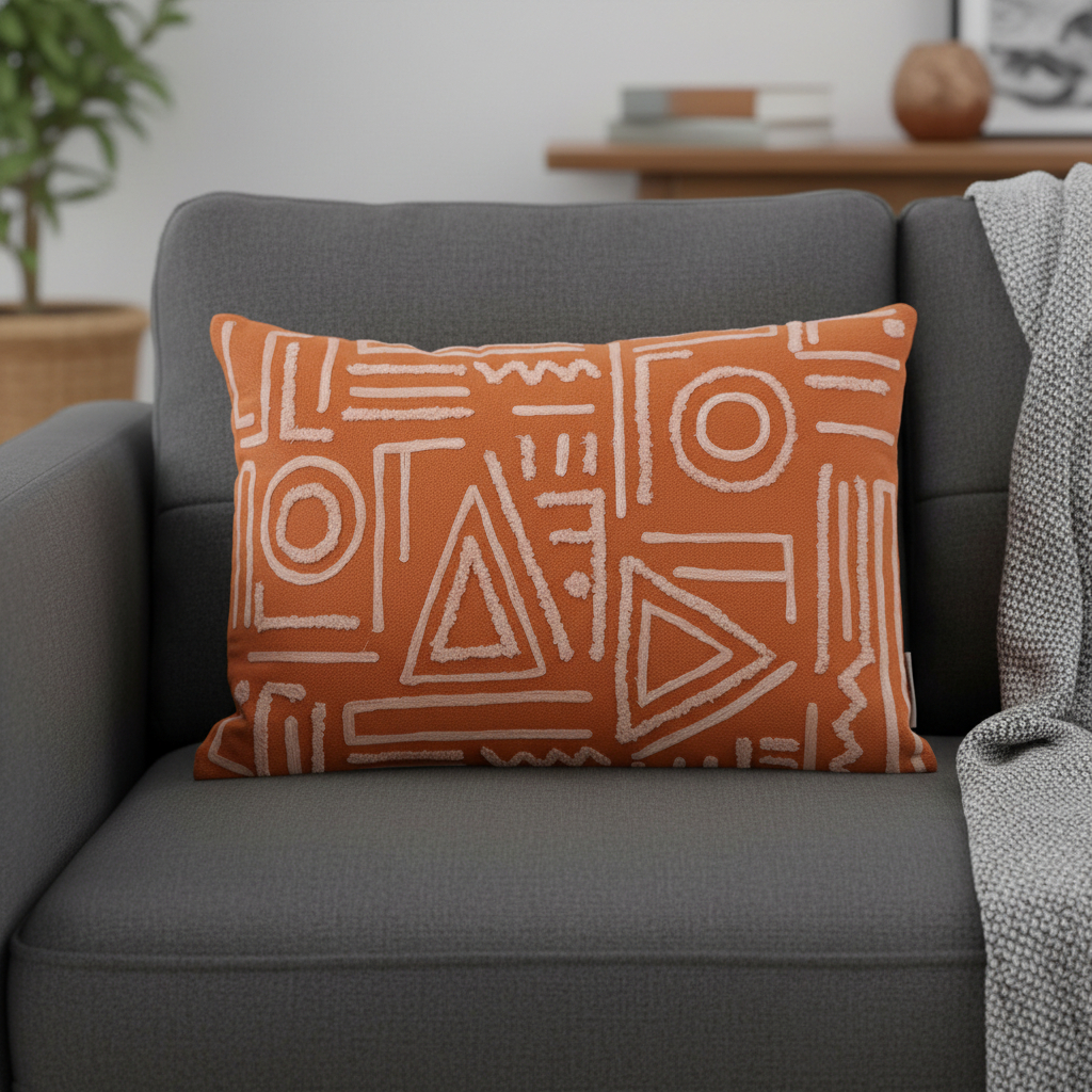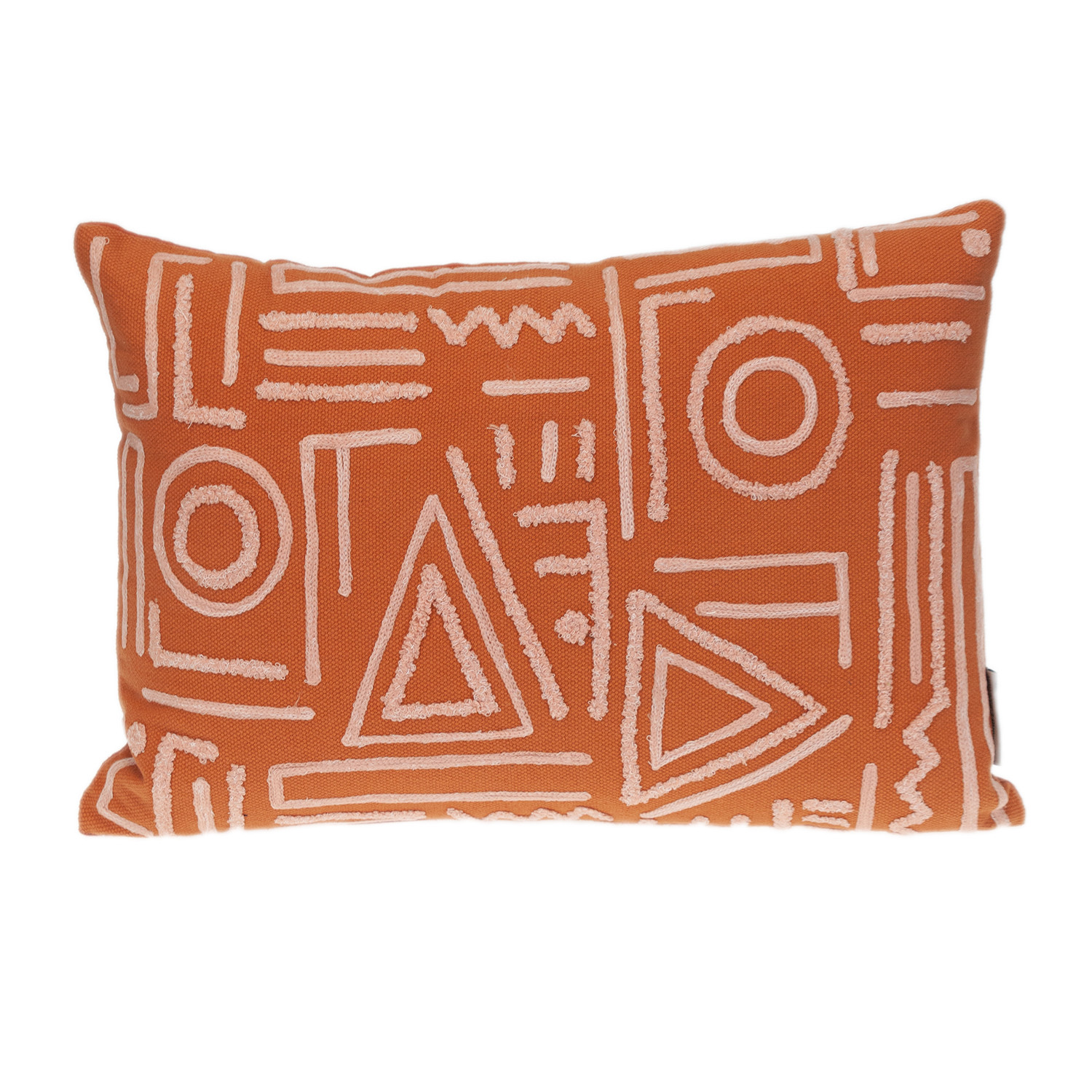 Add an air of fashion to your room and rejuvenate the space with this cute and fashionable 14-inch x 20-inch pink and orange geometric cotton throw pillow. This pink and orange colored decorative pillow is made from high grade cotton that is durable and long lasting. This soft polyfill filled pillow not only is decorative but made to be comfy and cozy all day long. Great to use on its own or mix with other decorations for the perfect look. A great decorative accessory for your favorite chair, to accent your sofa, or to use as part of your bed ensemble. 14-inch H x 20-inch W x 7-inch D