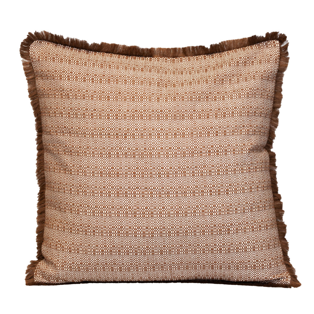 brown white cotton pillow fringe, white cotton pillow fringe, cotton pillow fringe, cotton pillow fringe edges, 24" brown white cotton pillow |