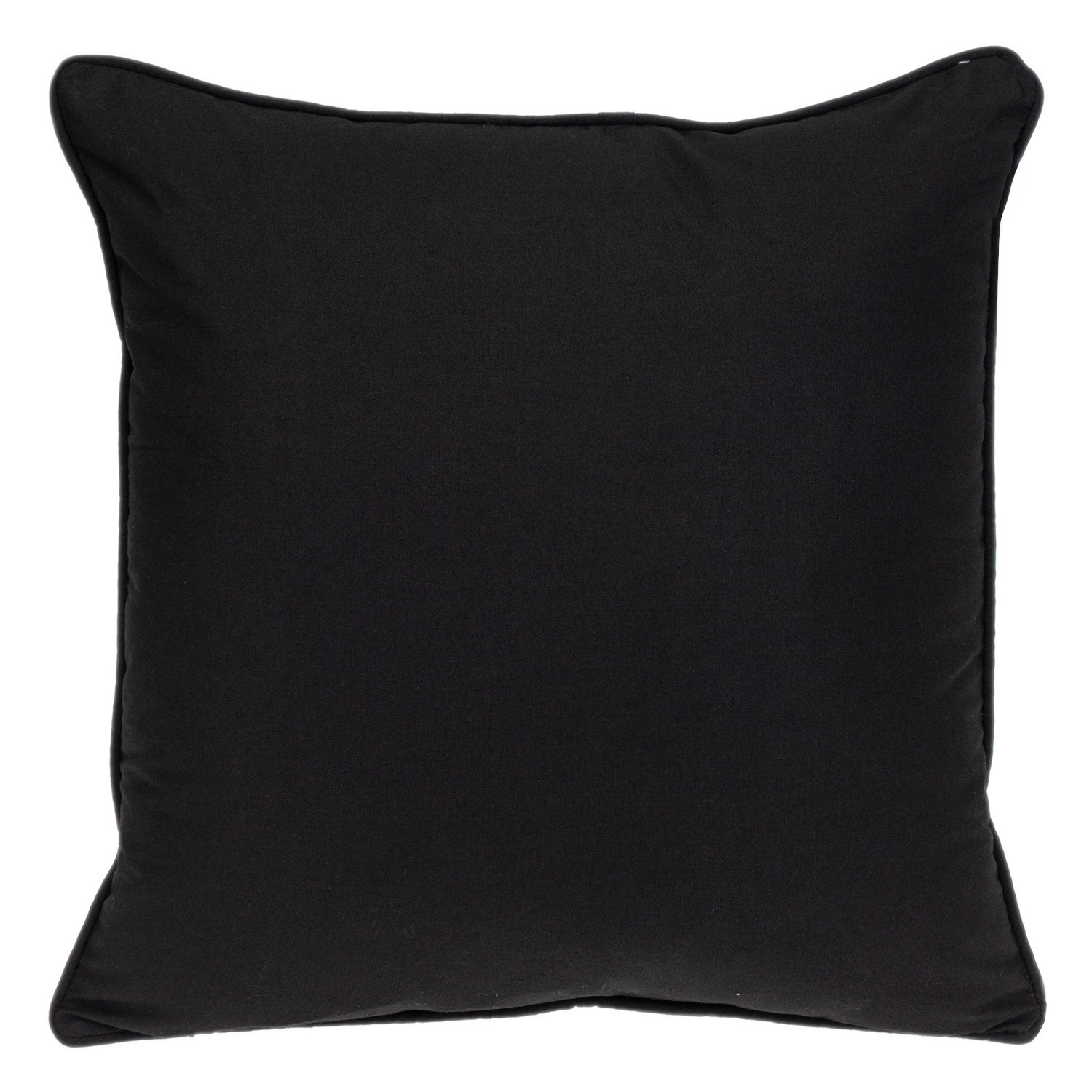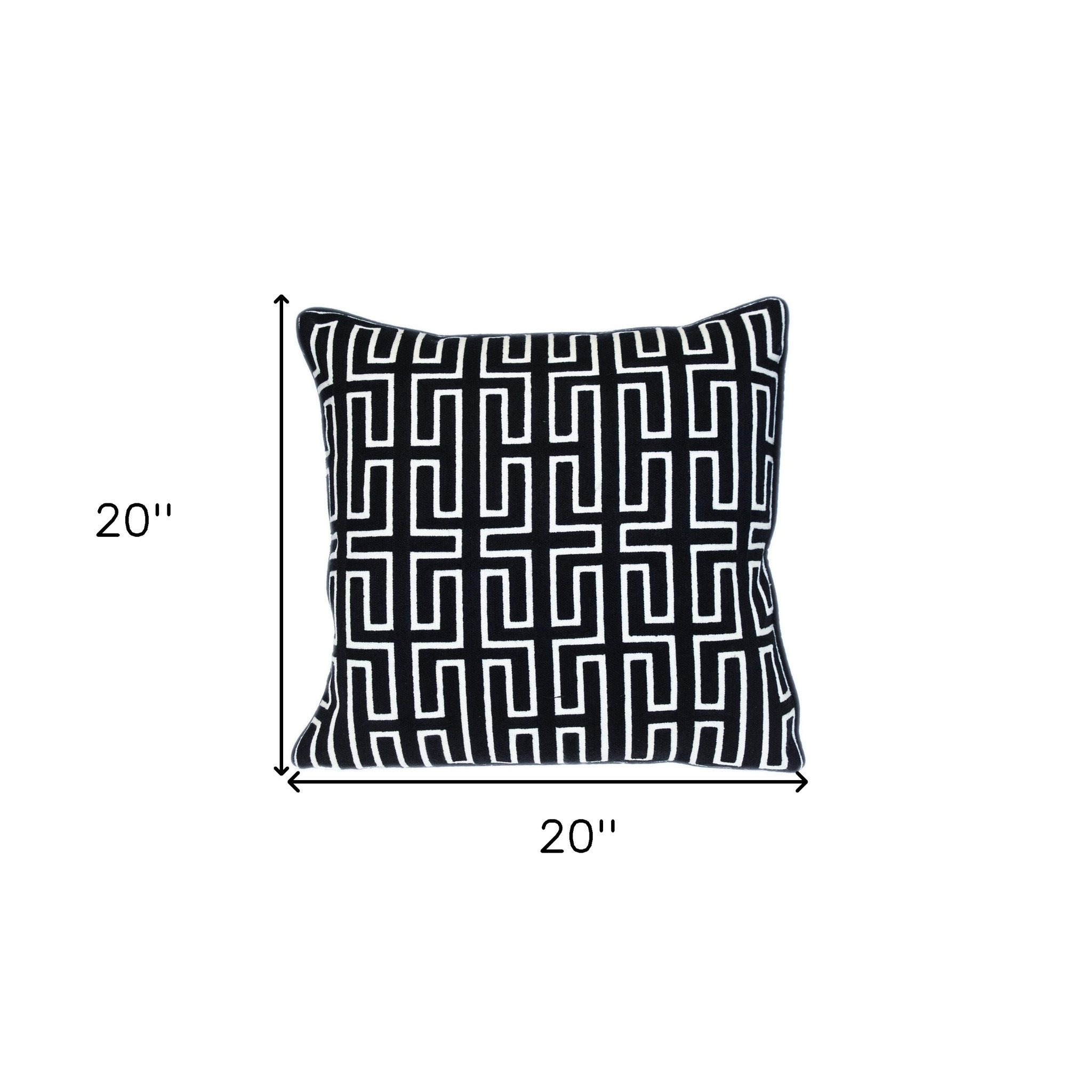 Unique and decorative, this comfortable 20-inch x 20-inch black geometric cotton zippered pillow will leave a lasting impression. This black hued piece represents quality construction, expertly made from premium 100% cotton that is not only long lasting but super soft to the touch as well. This soft polyfill pillow not only is decorative but made to be comfy and cozy all day long. Great to use on its own or mix with other decorations for the perfect look. A great decorative accessory for your favorite chair, to accent your sofa, or to use as part of your bed ensemble. 20-inch H x 20-inch W x 7-inch D