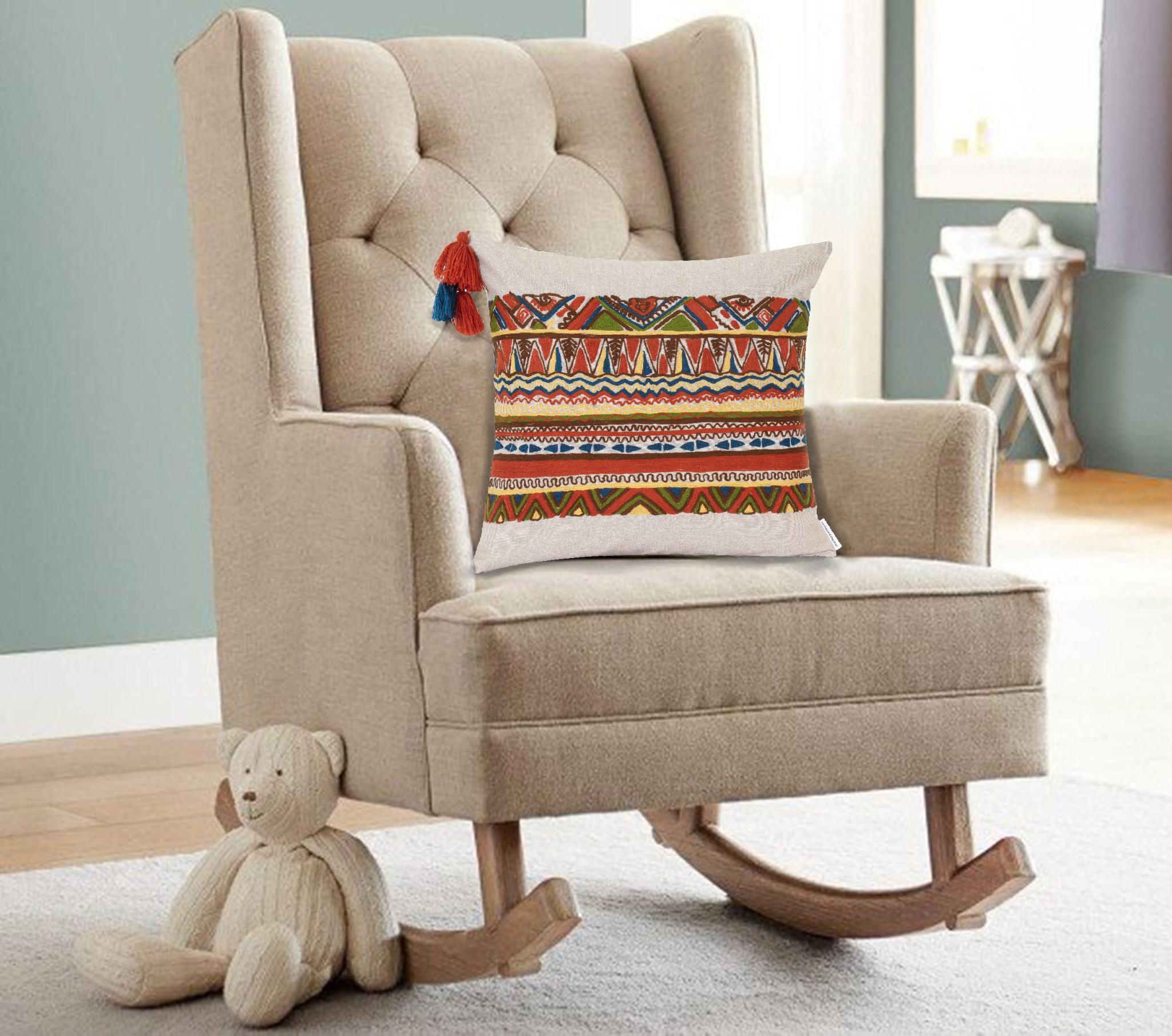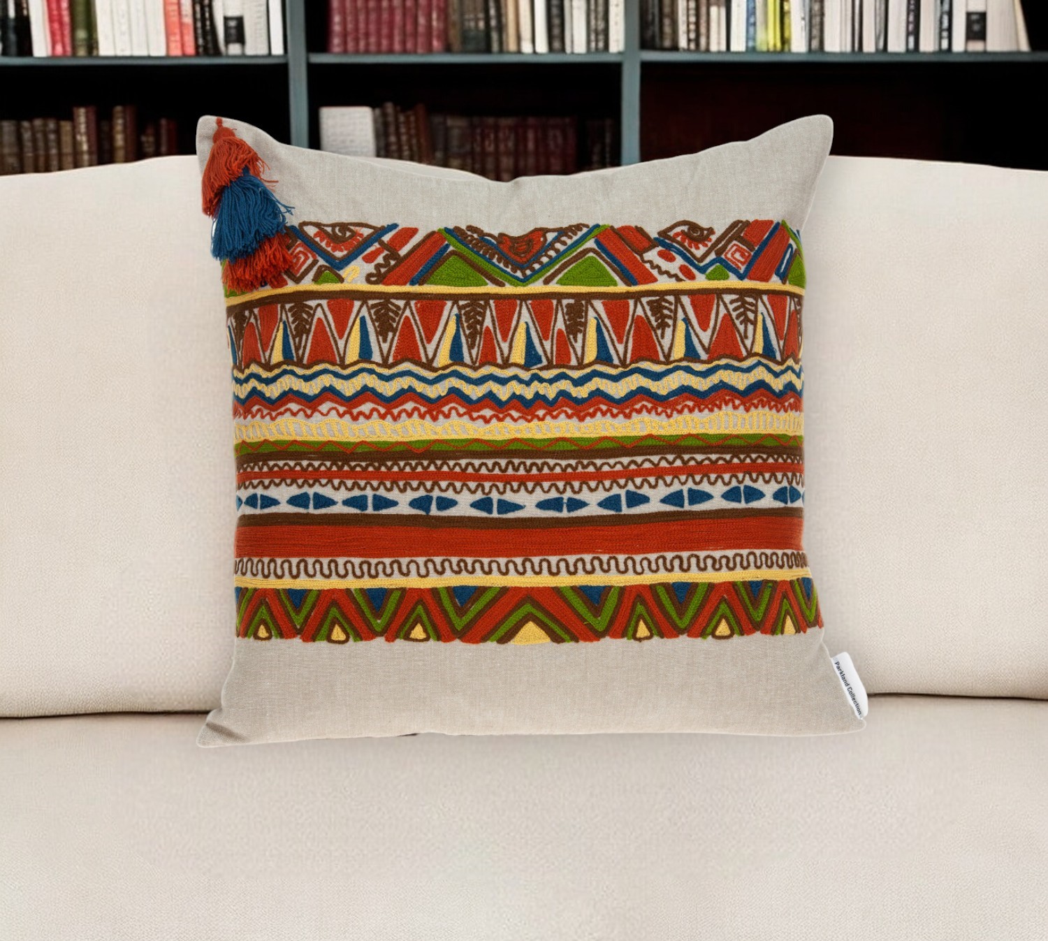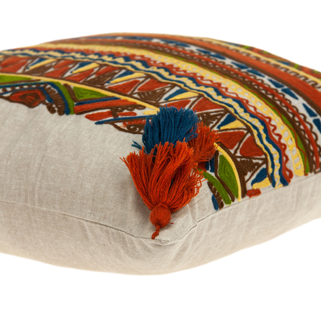 orange cotton blend pillow embroidery, cotton blend pillow embroidery, cotton blend pillow embroidery edges, blend pillow embroidery, beige orange cotton blend pillow |