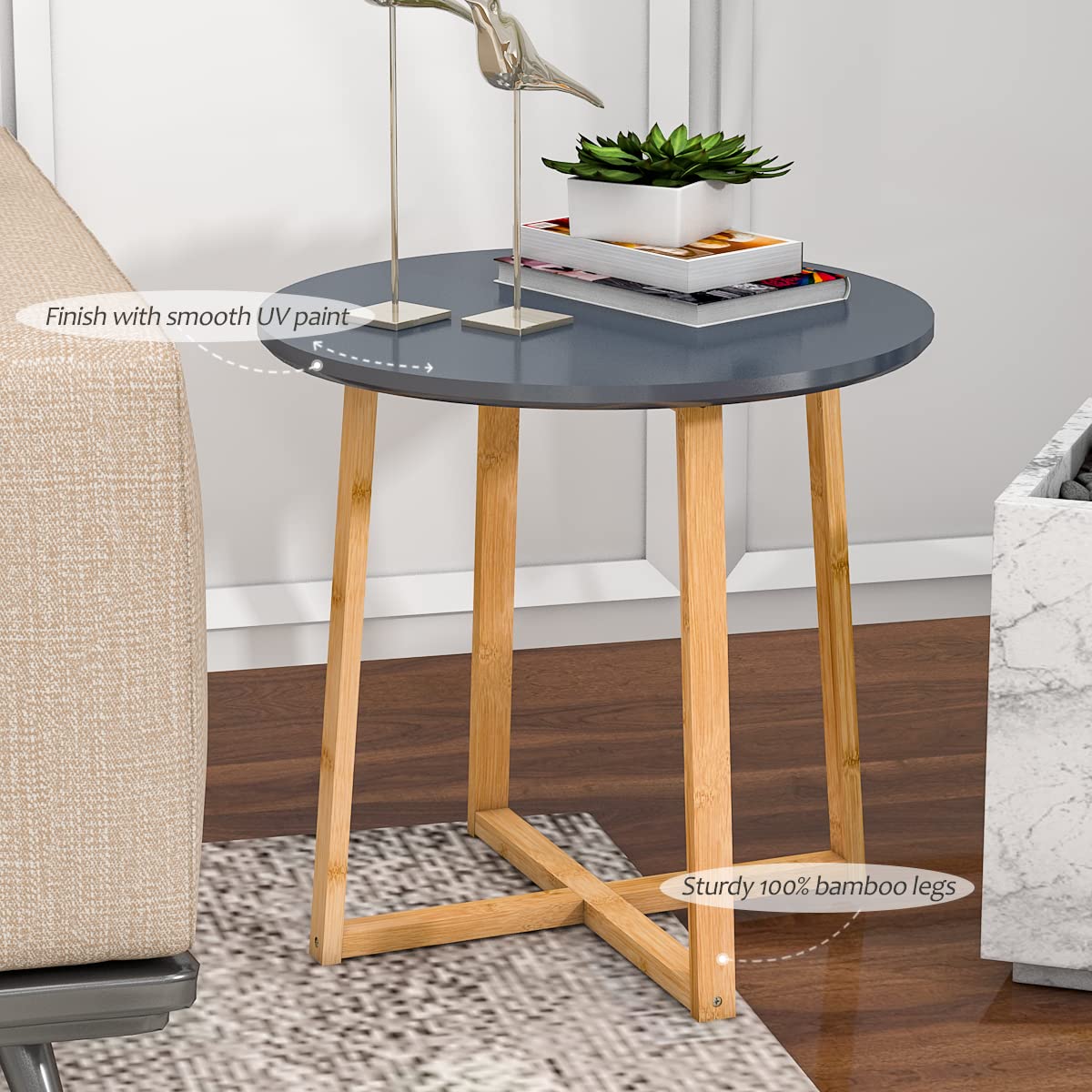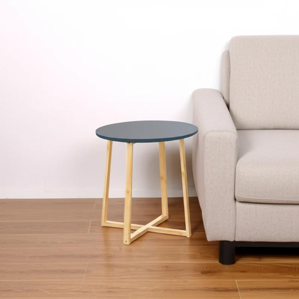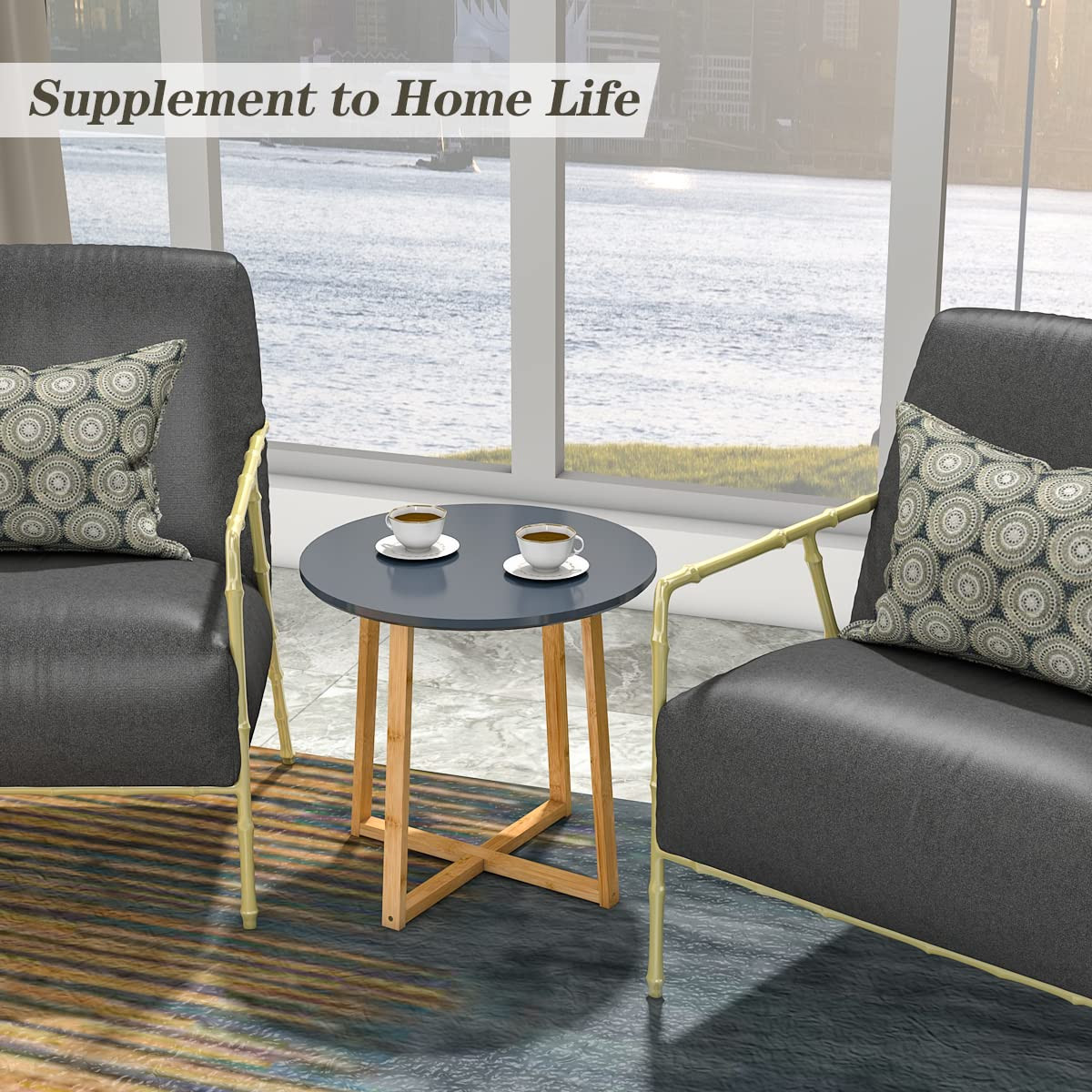 Optimize your space and add some charm to your room with the 20-inch gray and natural solid wood round cross legs end table. The top of this solid wood table is gray, while the open geometric base is a nice compliment in natural. Side tables are a great way to flank your sofa, use as an accent next to your favorite chair, or can even be used bedside. This versatile table is a great accent for most any room. 19.6-inch h x 19.6-inch w x 18.4-inch d.