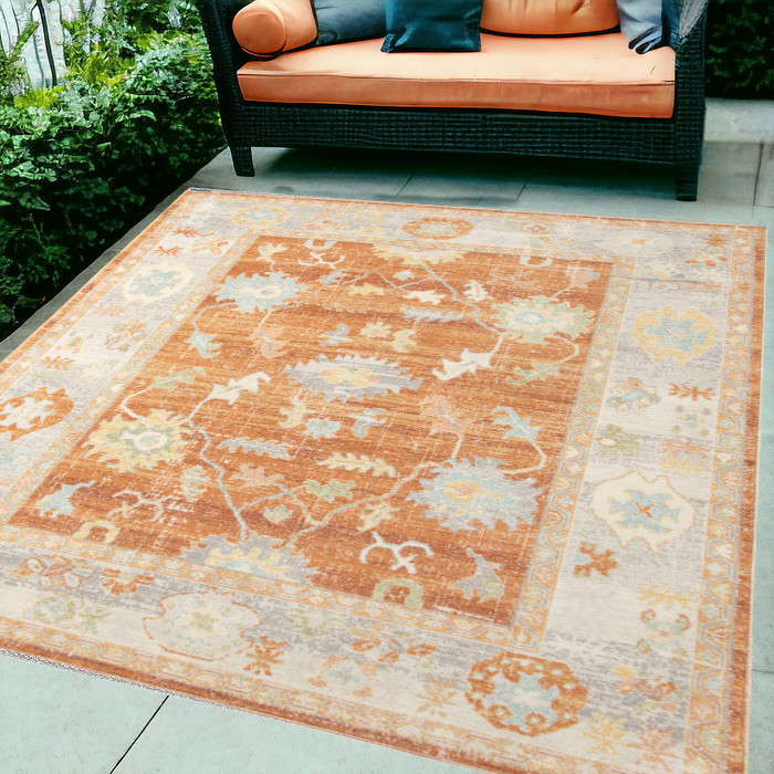 Add great coloration and comfortable texture to your space with this 5-foot x 7-foot blue and orange floral stain resistant indoor outdoor area rug. This rectangle shaped rug features a floral design in blue and orange to give it visual interest. A classic shape marries with good looking design for your space ideal for spaces with kids and pets, this rug is stain resistant to help repel stains and spilled liquids. Place this area rug against a hardwood or tile floor and it will enliven your living space with style and sophistication. 61-inch H x 90-inch W x 0.3-inch D
