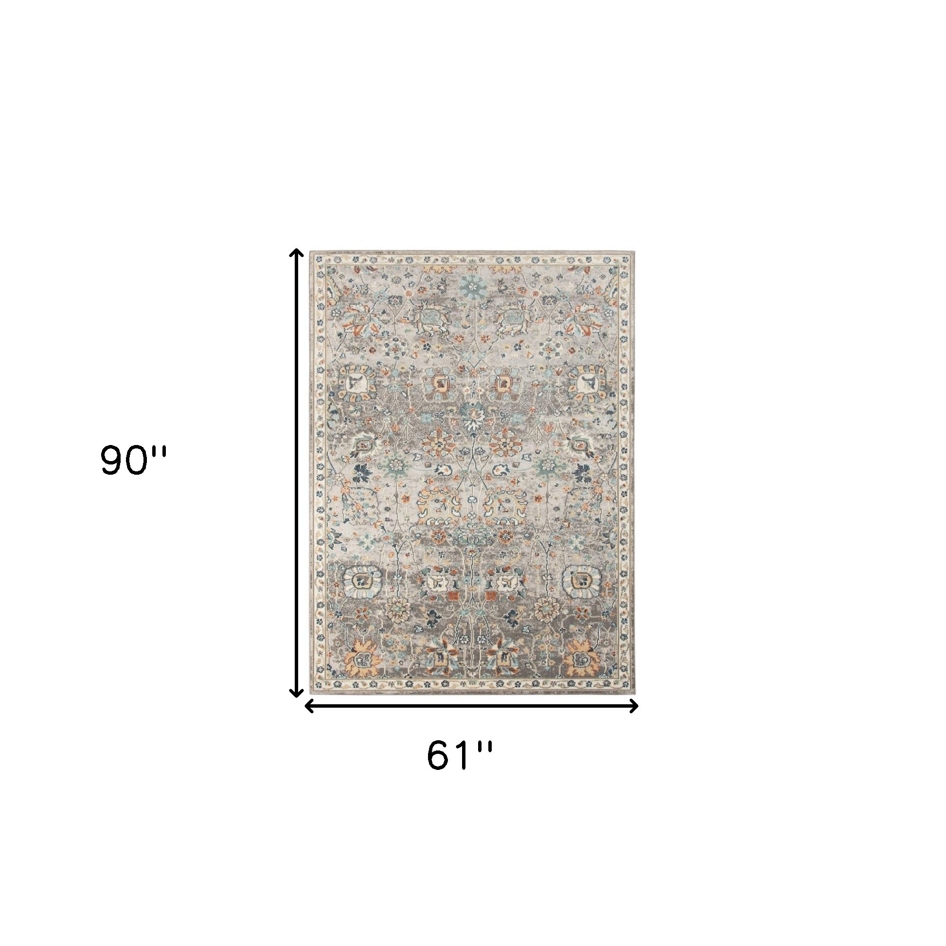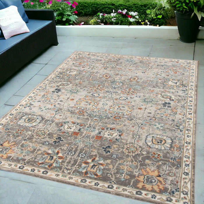 Gray Floral Indoor Outdoor Rug 5'x8'