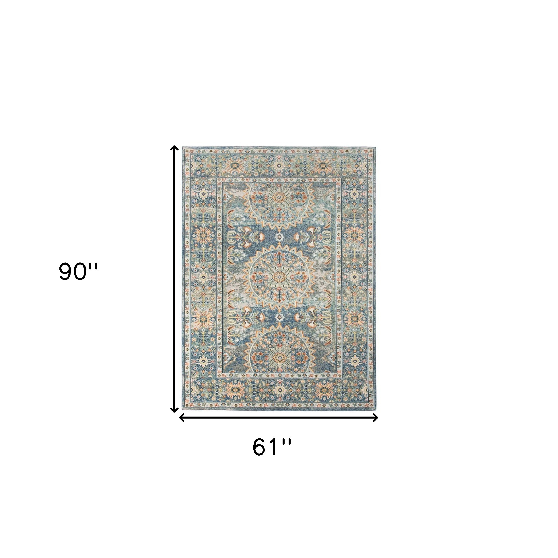 Add great coloration and comfortable texture to your space with this 5-foot x 7-foot blue and orange floral medallion stain resistant indoor outdoor area rug. This rectangle shaped rug features a floral medallion design in blue and orange to give it visual interest. A classic shape marries with good looking design for your space ideal for spaces with kids and pets, this rug is stain resistant to help repel stains and spilled liquids. Place this area rug against a hardwood or tile floor and it will enliven your living space with style and sophistication. 61-inch H x 90-inch W x 0.3-inch D