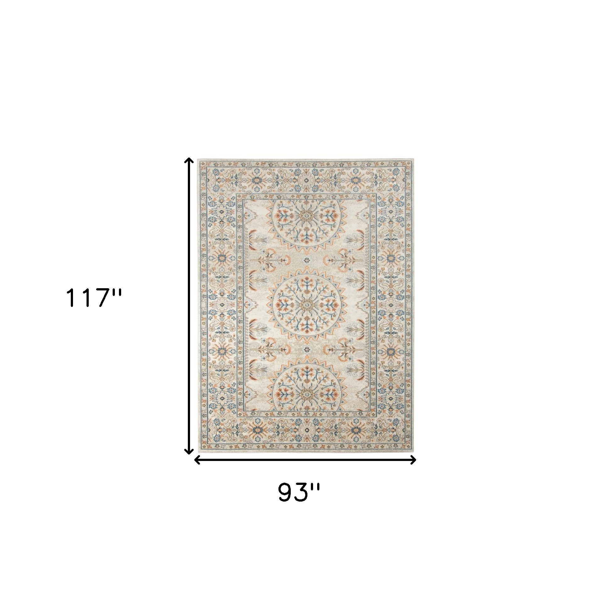 Add some artistry to your room with this 8-foot x 10-foot blue and orange medallion stain resistant indoor outdoor area rug. This rectangle shaped rug features a medallion design in blue and orange to give it visual interest. A classic shape marries with good looking design for your space ideal for spaces with kids and pets, this rug is stain resistant to help repel stains and spilled liquids. Area rugs help to give warmth and sense of home to your space. 93-inch H x 117-inch W x 0.3-inch D