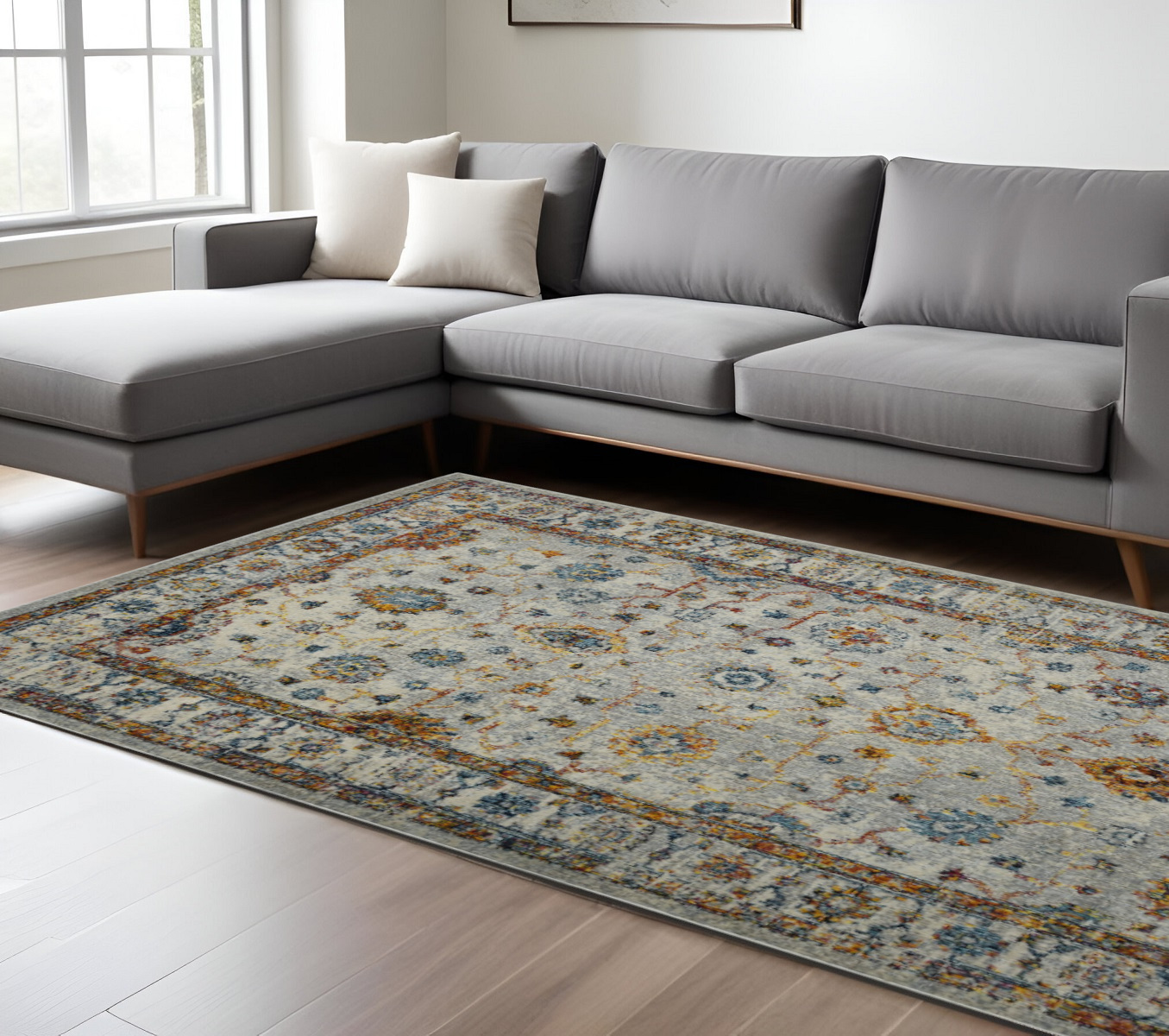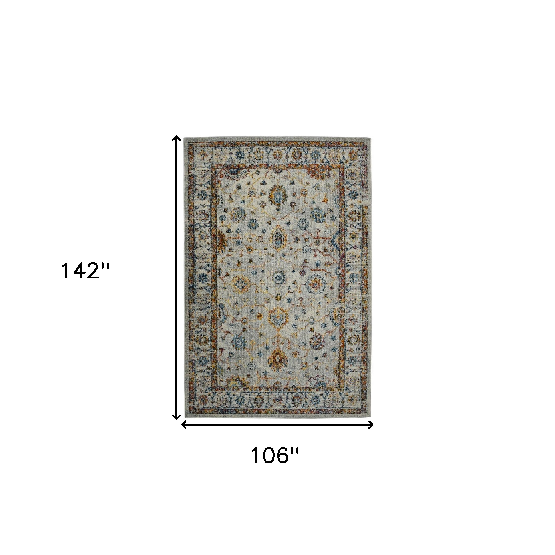 Set an inviting tone in your space with this 9-foot x 12-foot gray rust and blue area rug. Ideal for spaces with kids and pets, this rug is stain resistant to help repel dirt and spilled liquids. Built to last, this rug crafted from polypropylene fibers is known for its durability and long lasting appeal. Rugs are a great way to showcase your style, hide imperfections, warm your home and reduce noise. This larger sized, persian styled rug is ready to create a focal point or statement piece in your room. 106.00-inch h x 142.00-inch w x 0.38-inch d.