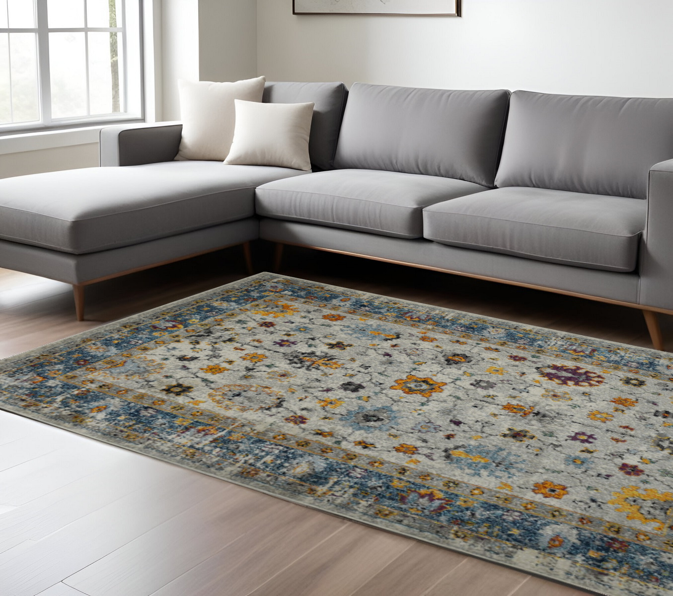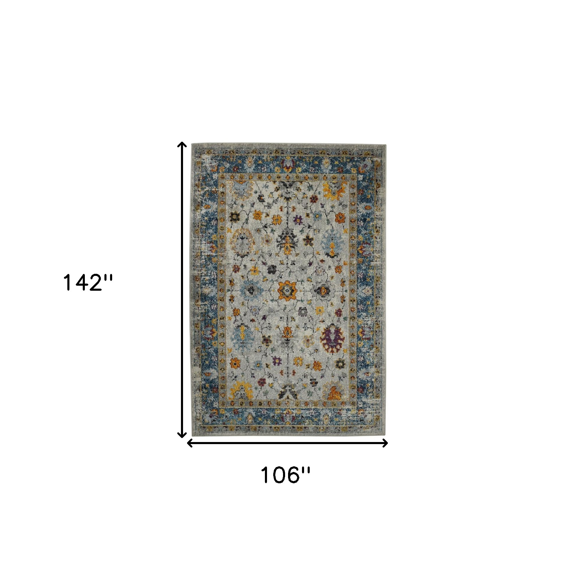 Set an inviting tone in your space with this 9-foot x 12-foot gray blue and orange area rug. Ideal for spaces with kids and pets, this rug is stain resistant to help repel dirt and spilled liquids. Built to last, this rug crafted from polypropylene fibers is known for its durability and long lasting appeal. Rugs are a great way to showcase your style, hide imperfections, warm your home and reduce noise. This larger sized, persian styled rug is ready to create a focal point or statement piece in your room. 106.00-inch h x 142.00-inch w x 0.38-inch d.